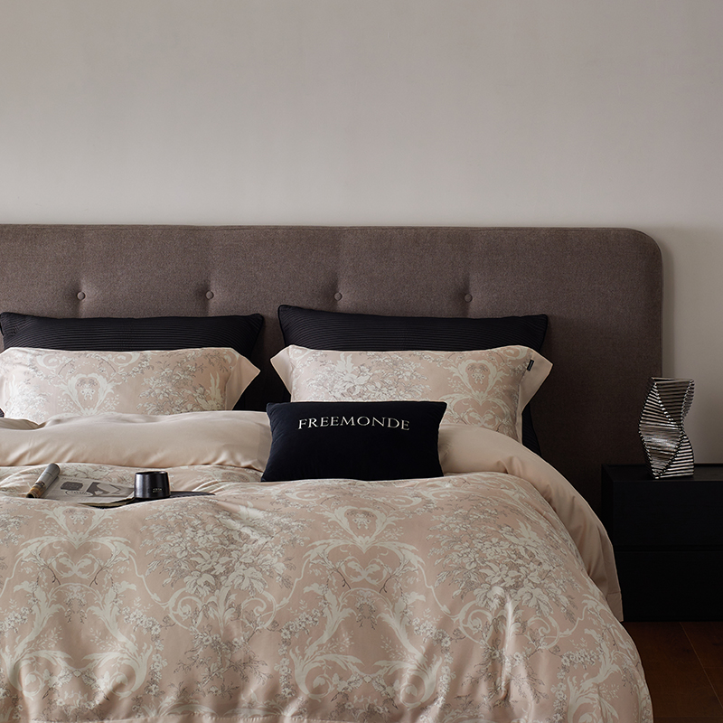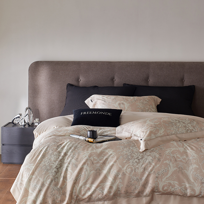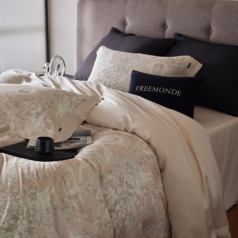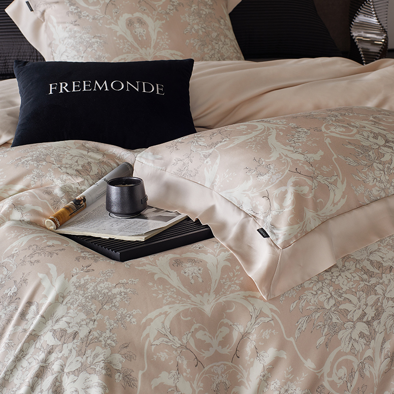 商品名称:蕾诺家纺 2025新款60支进口奥地利兰精天丝数码印花四件套 娜塔莎-贝壳粉