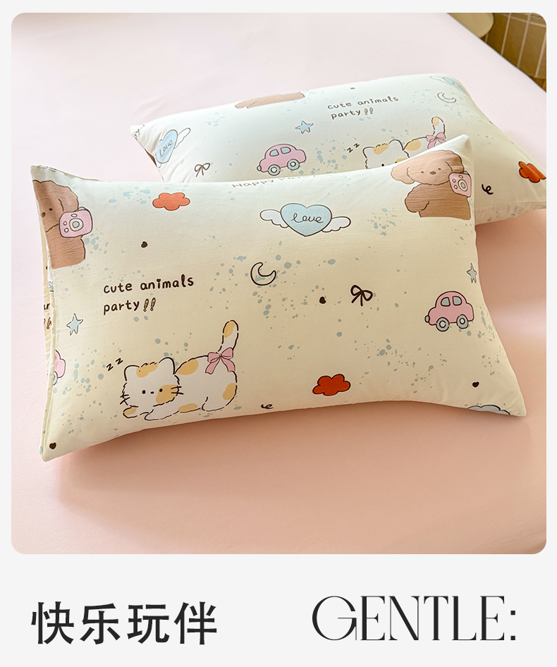 商品名称:多品2025新款宿舍卡通ins风水洗棉枕套 快乐玩伴