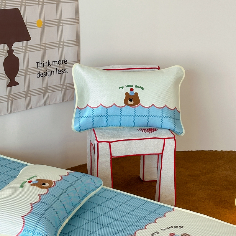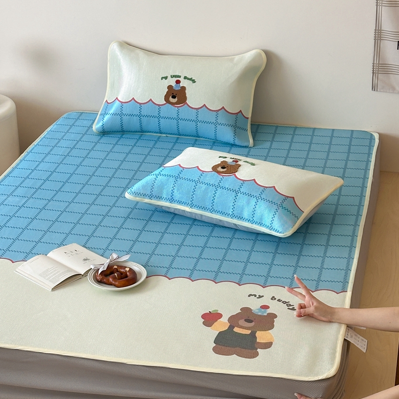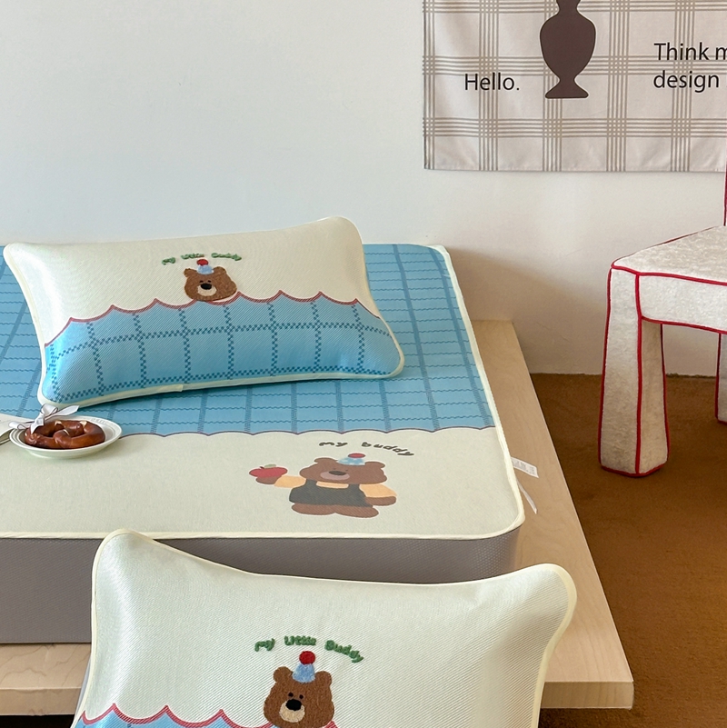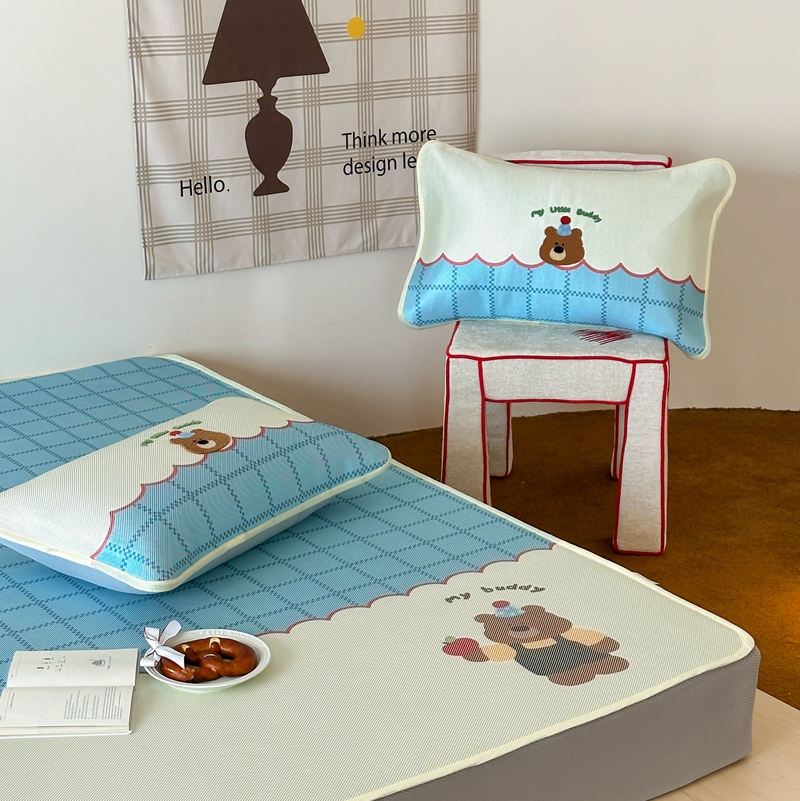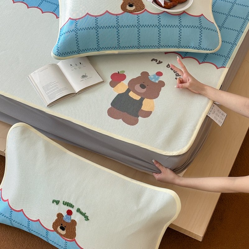 商品名称:觅糖2025新款ins冰藤席毛巾绣凉席 苹果小熊