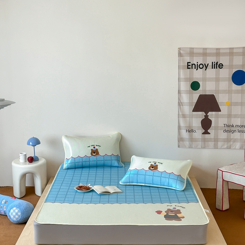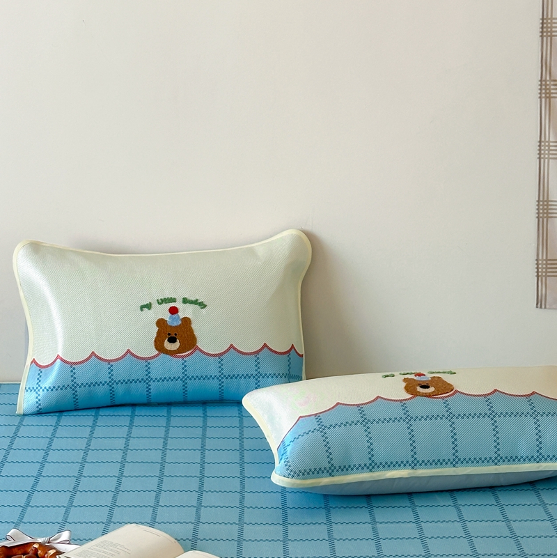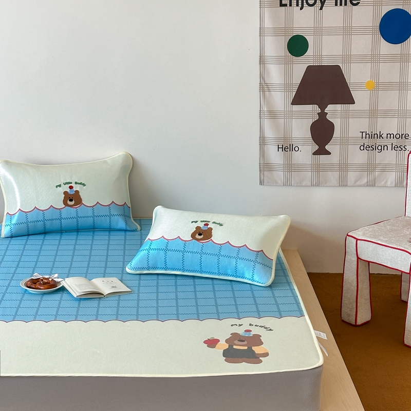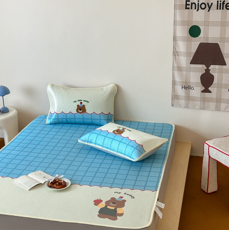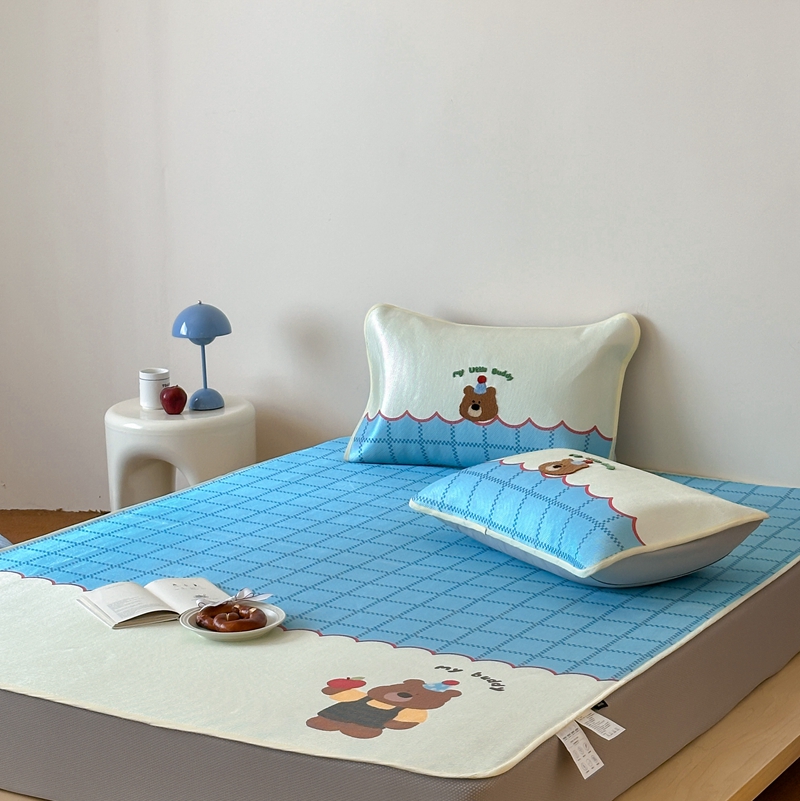 商品名称:觅糖2025新款ins冰藤席毛巾绣凉席 苹果小熊