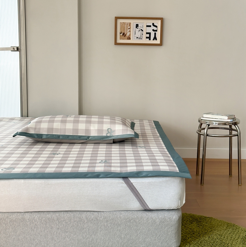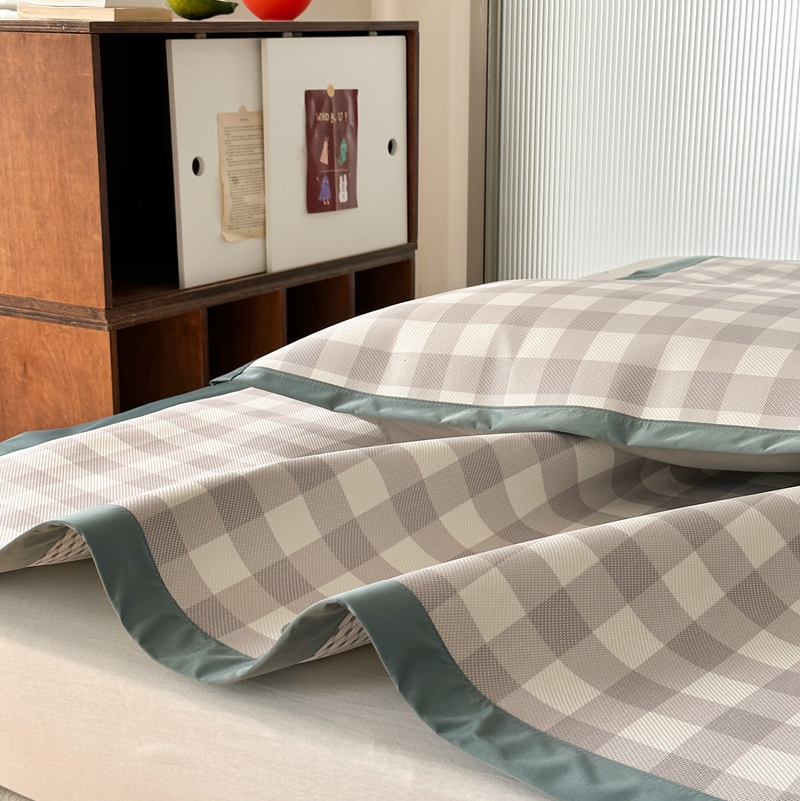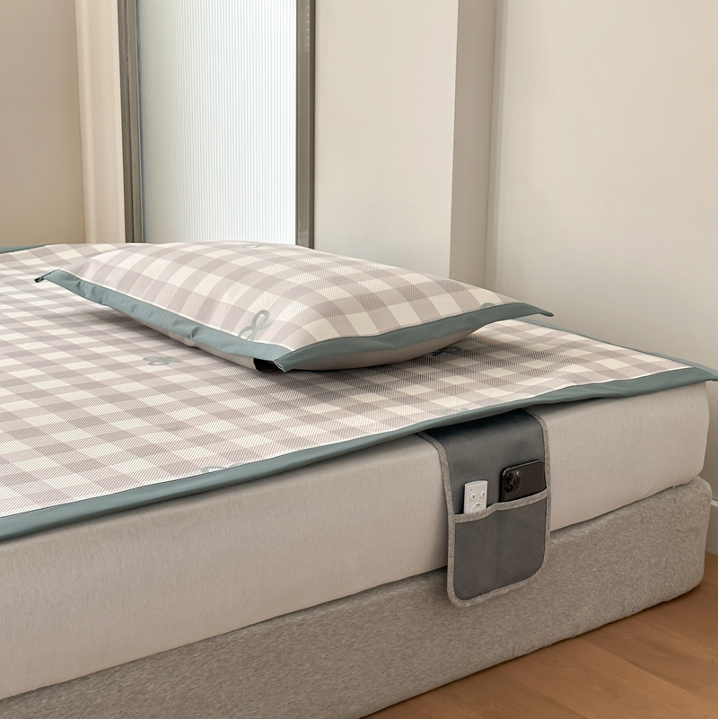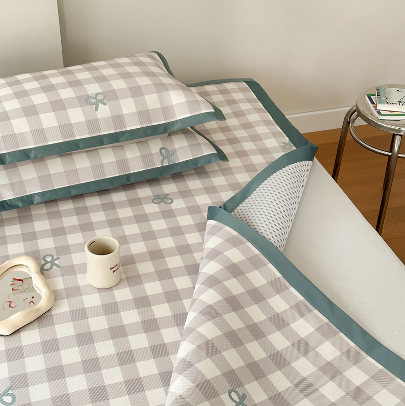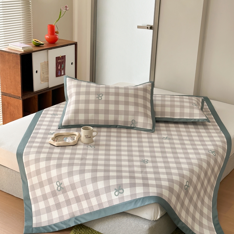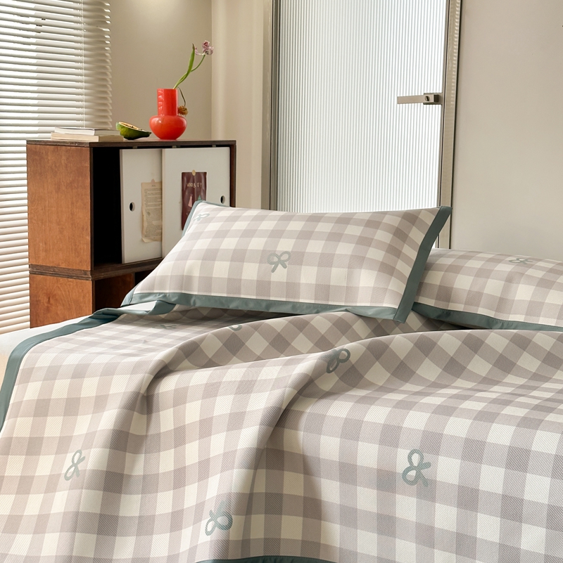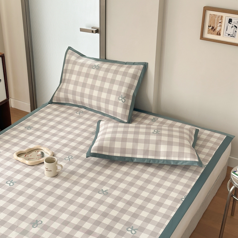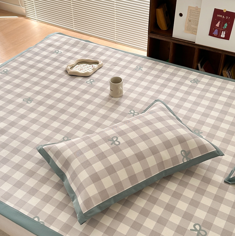 • 91家纺网 家纺一手货源 找家纺 觅糖家纺 2025春夏新款A类抗菌养生冰藤凉席席子 灰格蝴蝶结