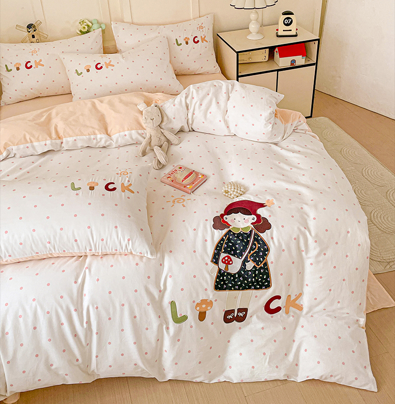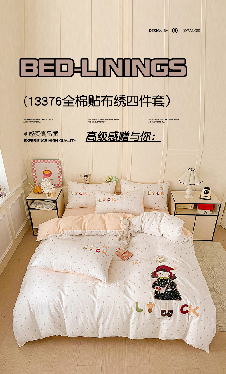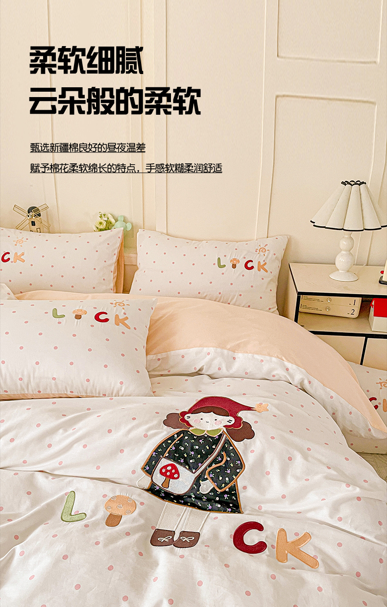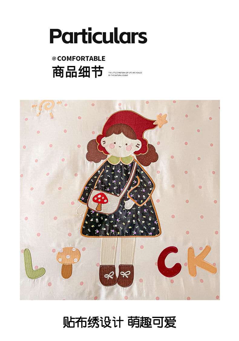 娜娜 2025新款13376全棉贴布绣四件套 帽子女孩-奶昔白