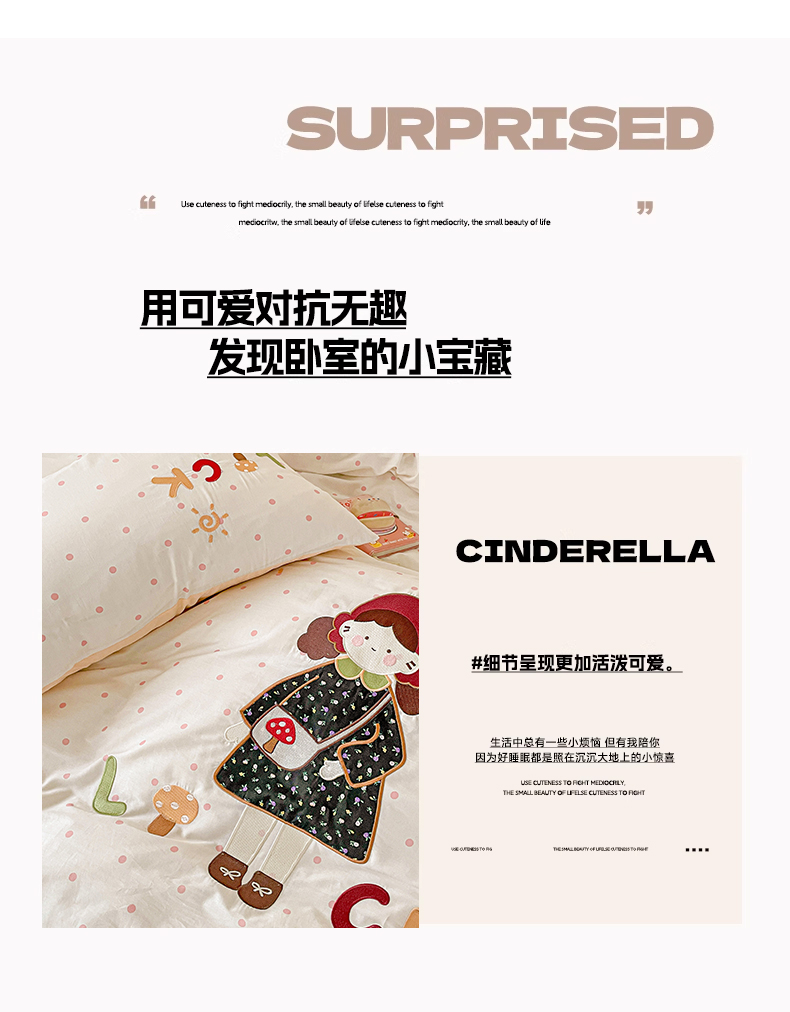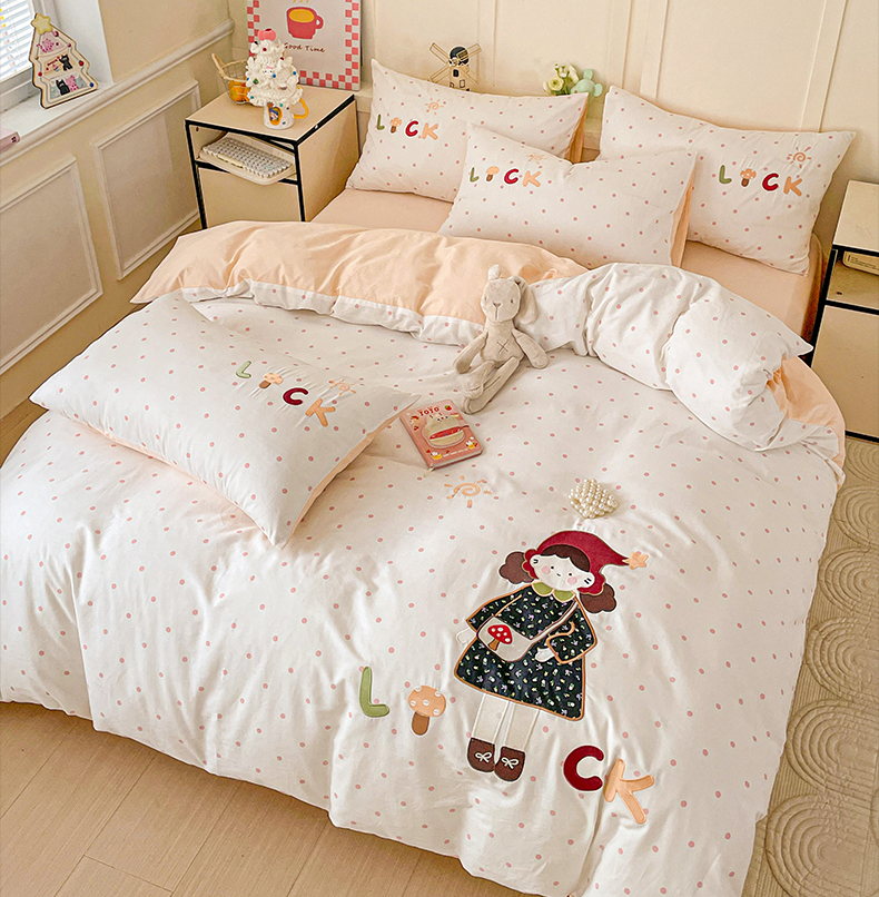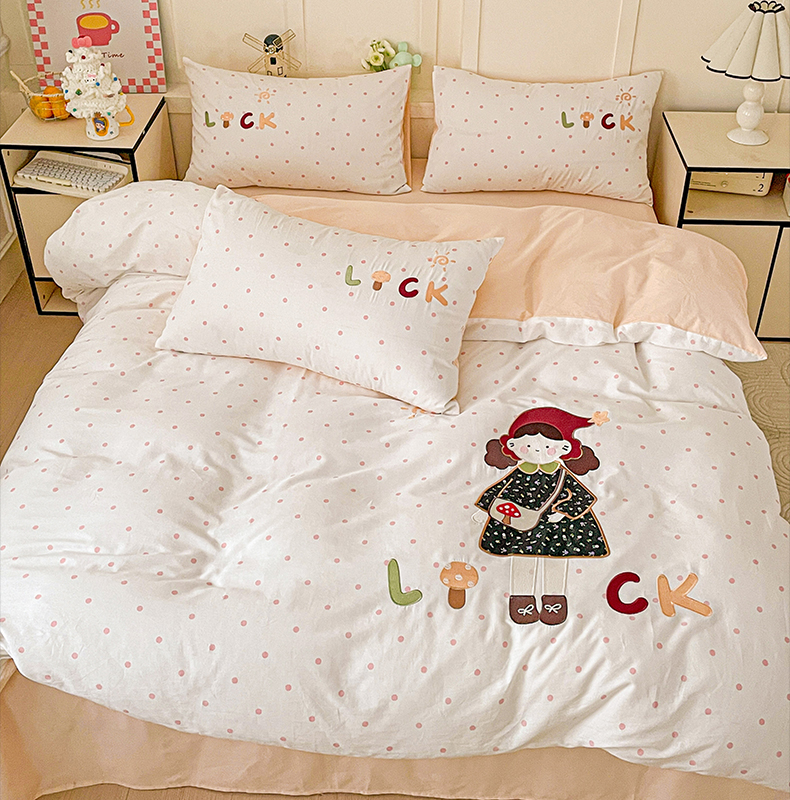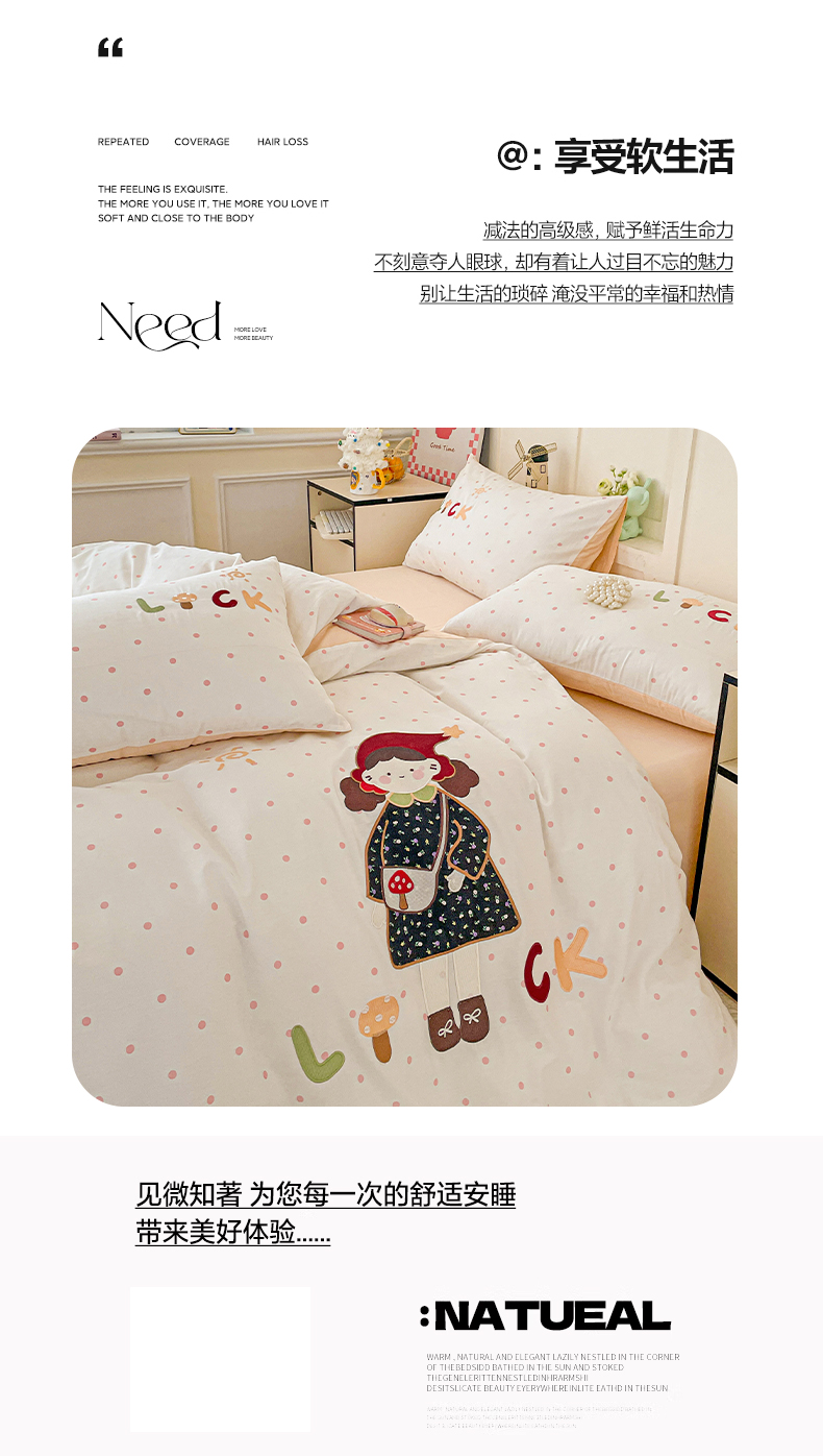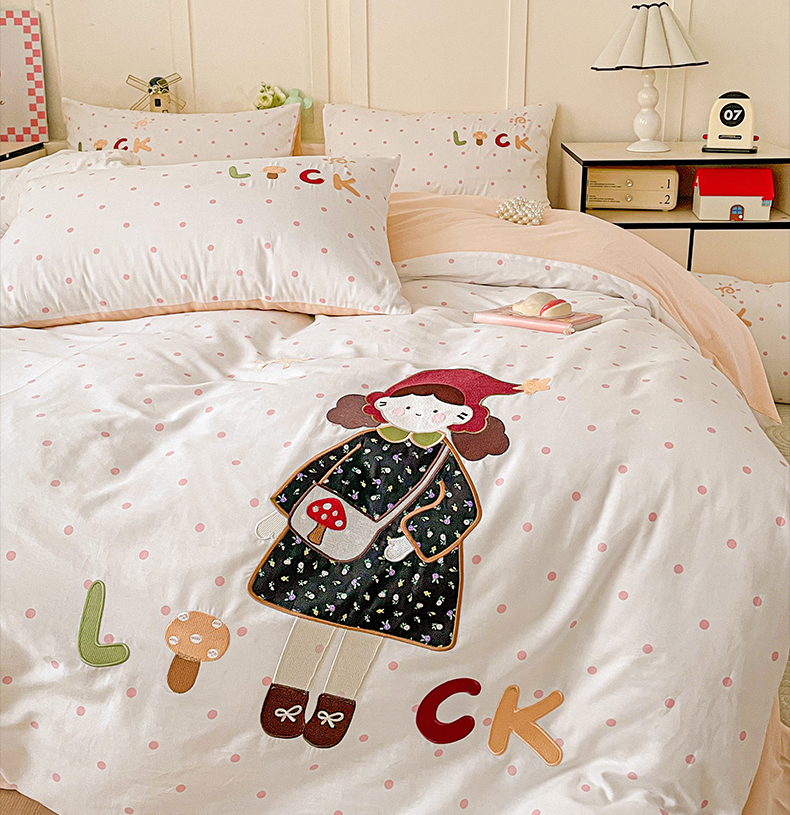 娜娜 2025新款13376全棉贴布绣四件套 帽子女孩-奶昔白