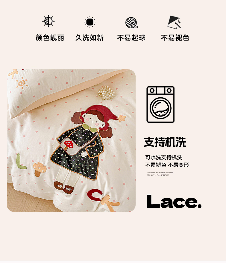 商品名称:娜娜 2025新款13376全棉贴布绣四件套 帽子女孩-奶昔白