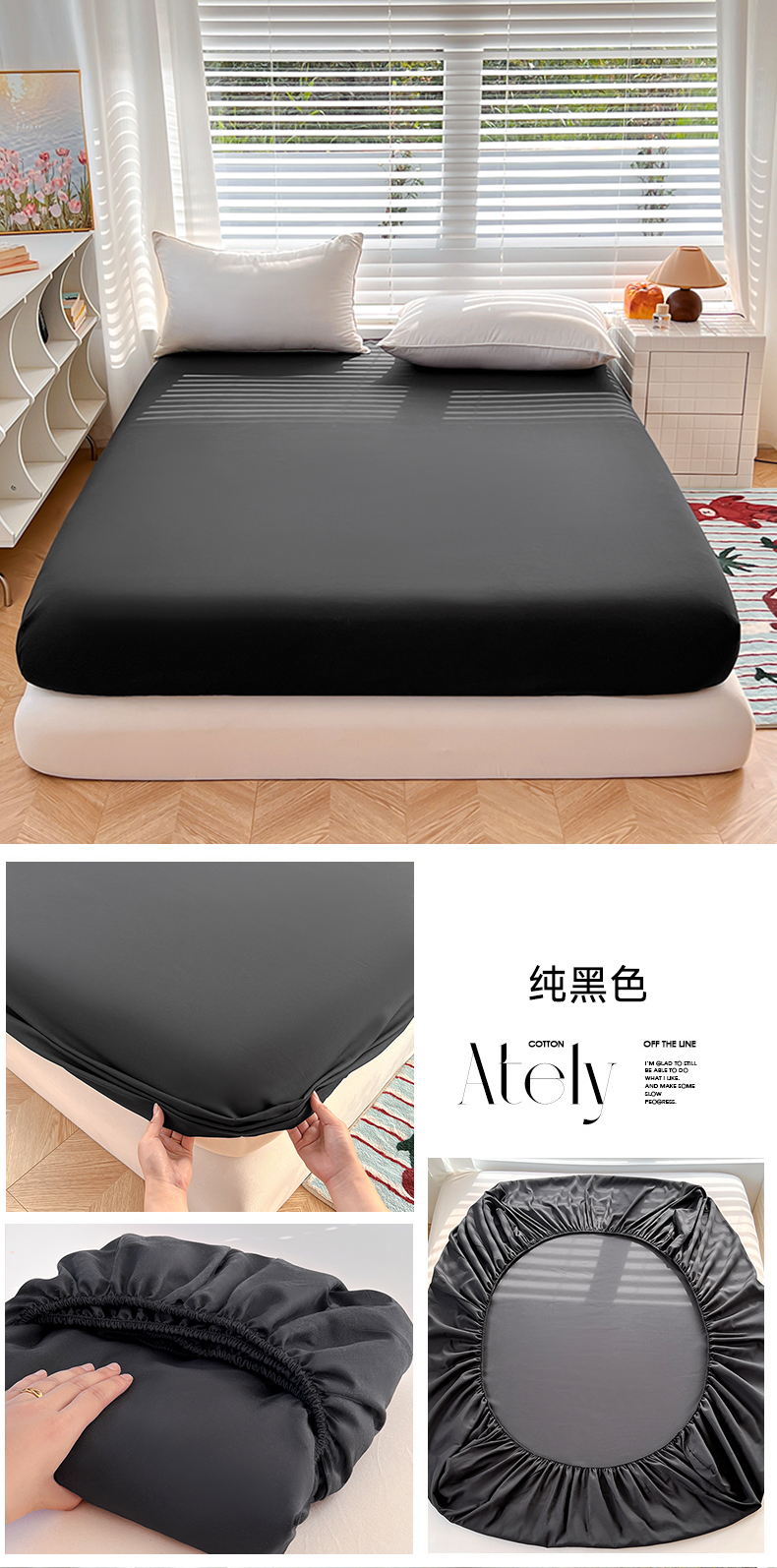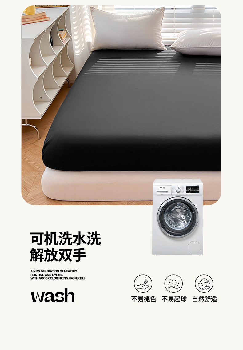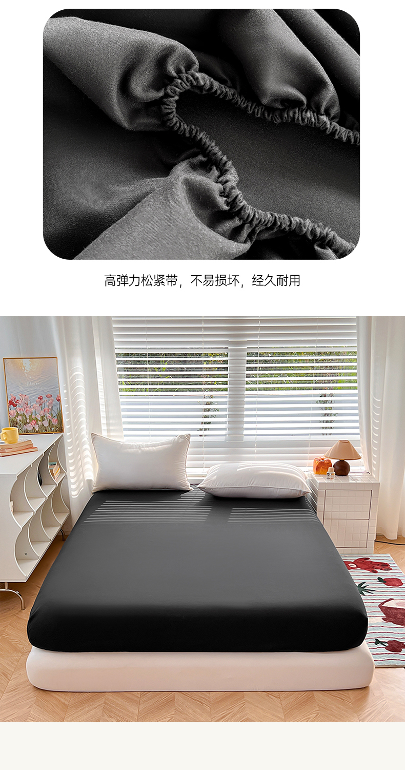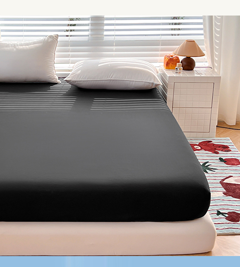 赫然家纺 2026新款亲肤舒适活性印染纯色磨毛床笠系列-单床笠 纯黑色
