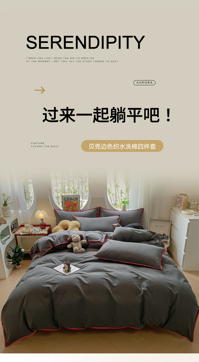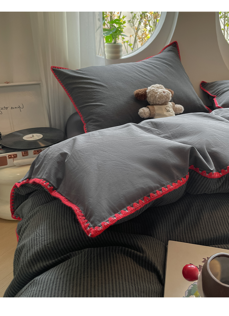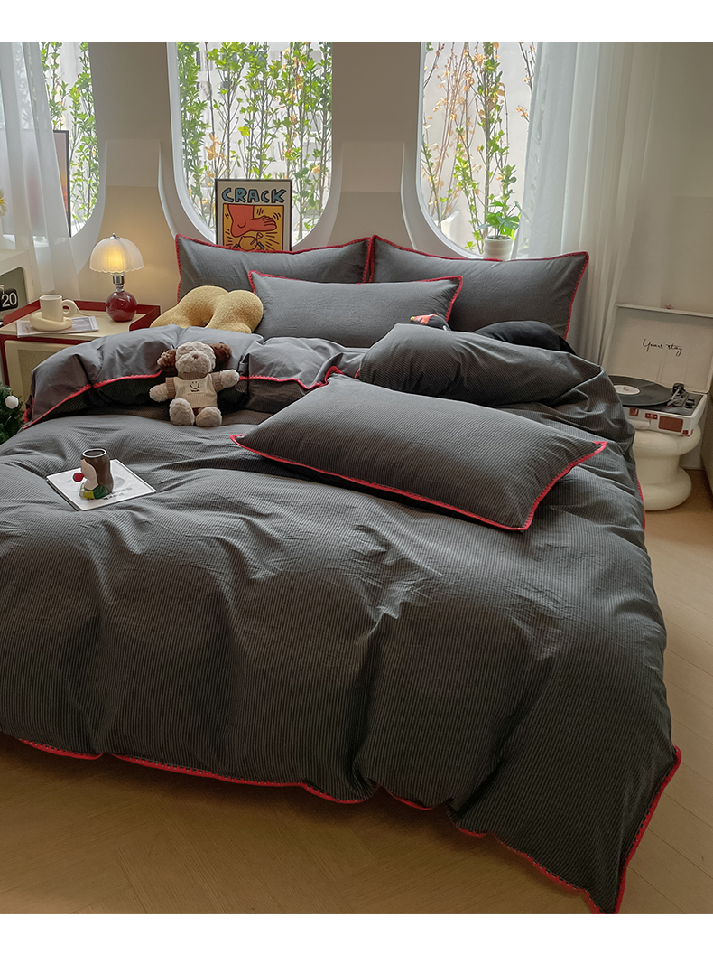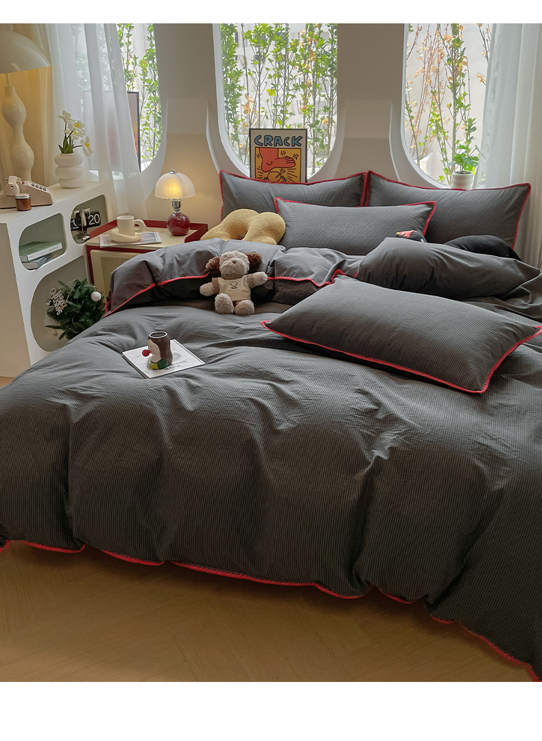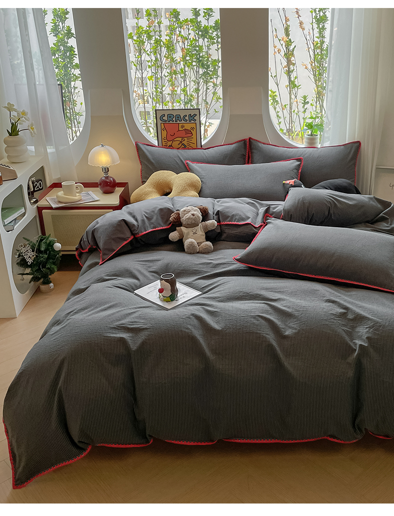 当前位置: 91家纺网 > 商品网购 > 床品套件 > 四件套 > 雅居纺2025新款贝壳边色织水洗棉四件套 深灰密条