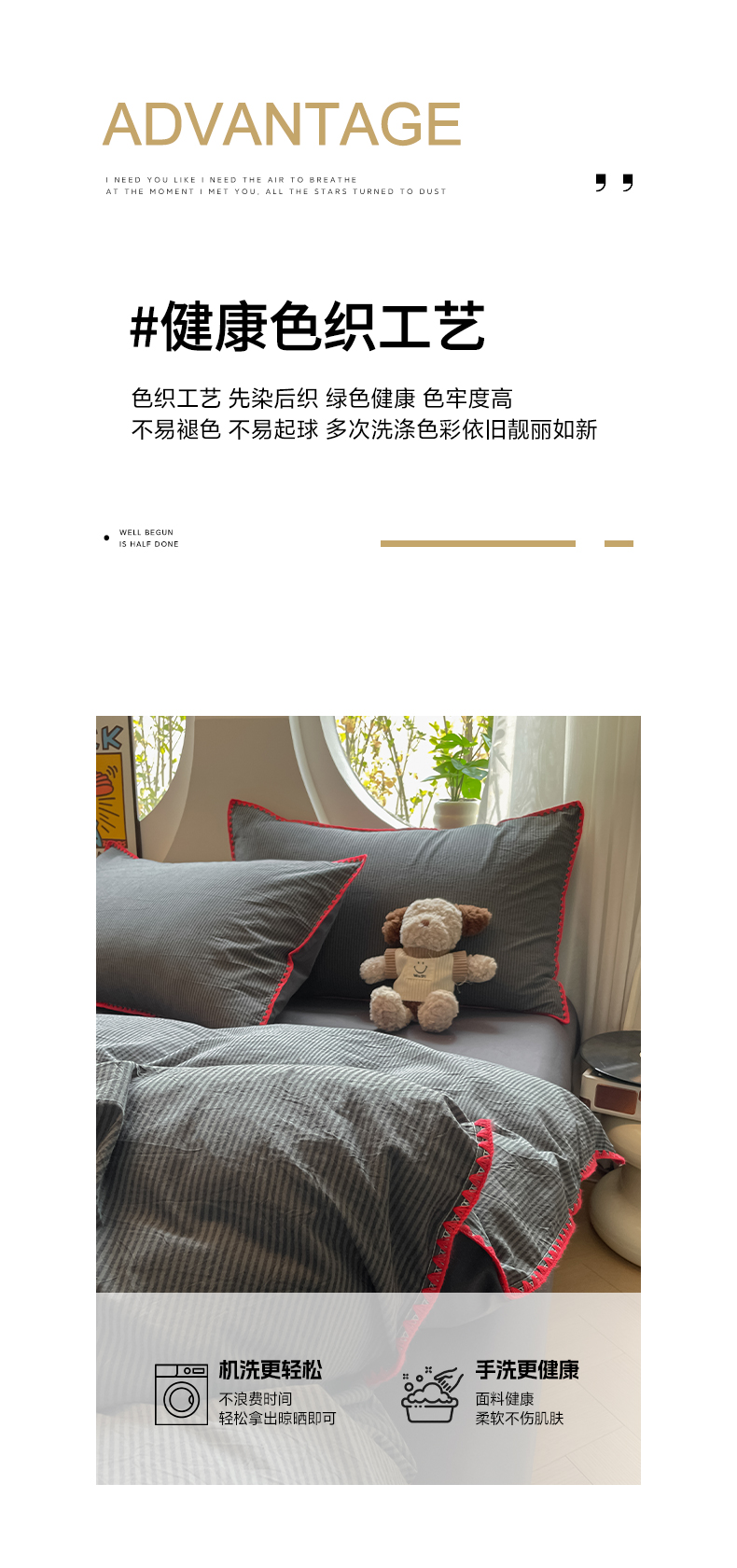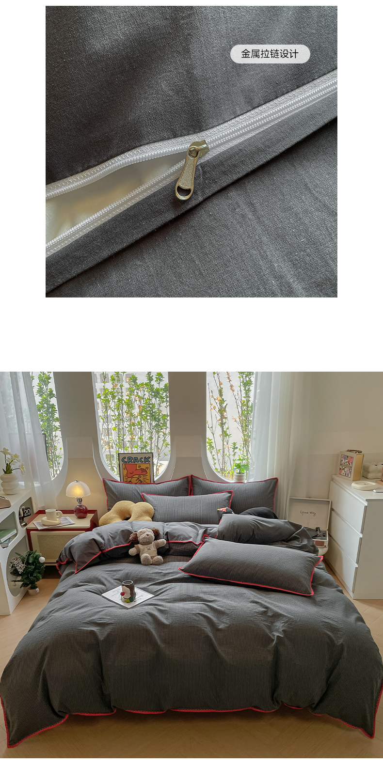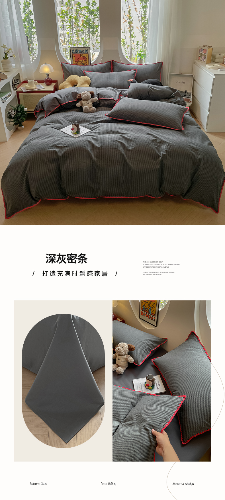 当前位置: 91家纺网 > 商品网购 > 床品套件 > 四件套 > 雅居纺2025新款贝壳边色织水洗棉四件套 深灰密条
