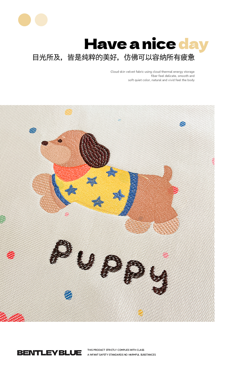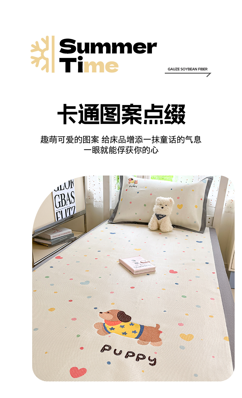 商品名称:雅居纺2025新款A类加厚三明治底绣花冰藤席 星星腊肠狗