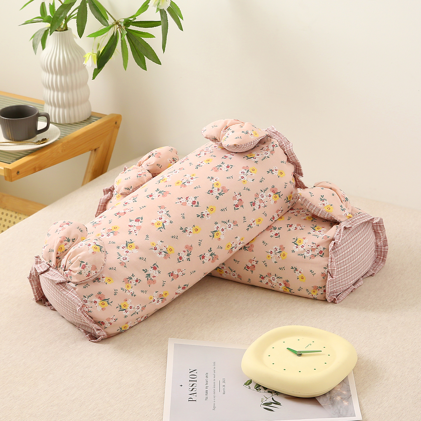 珍贝2025新款兔公仔枕头 粉色小花