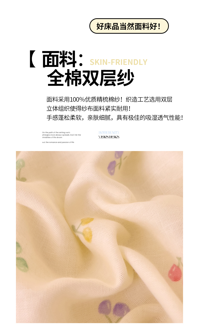 当前位置: 91家纺网 > 商品网购 > 床品套件 > 四件套 > 双层纱四件套 > DoDo 兜兜 2025新款全棉纯棉小温暖双层纱四件套【可定做尺寸】 五彩樱桃