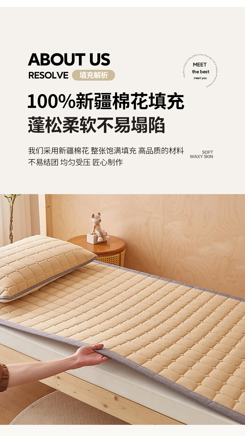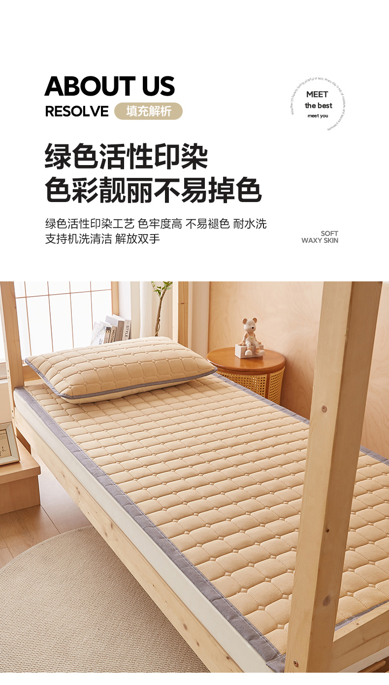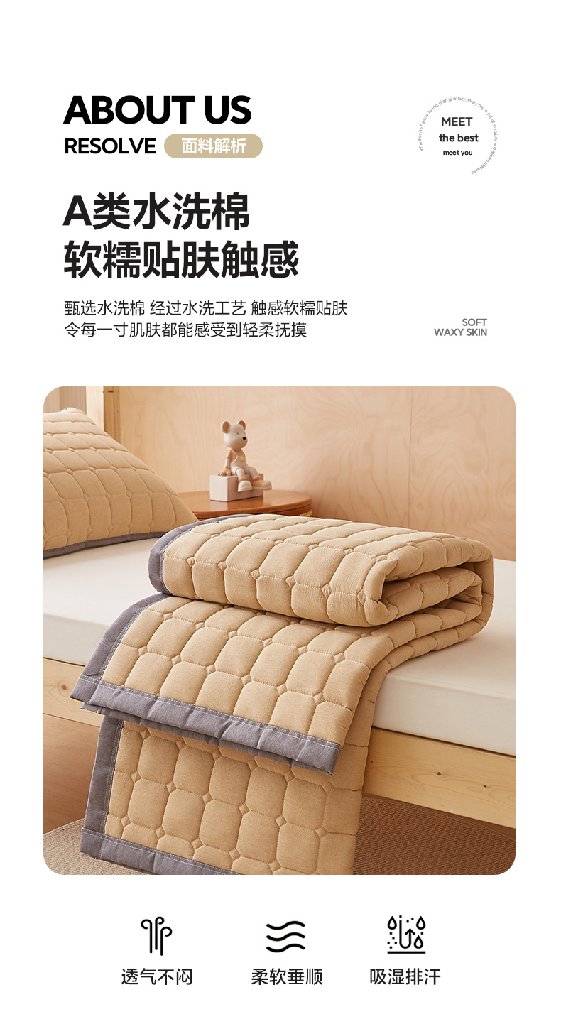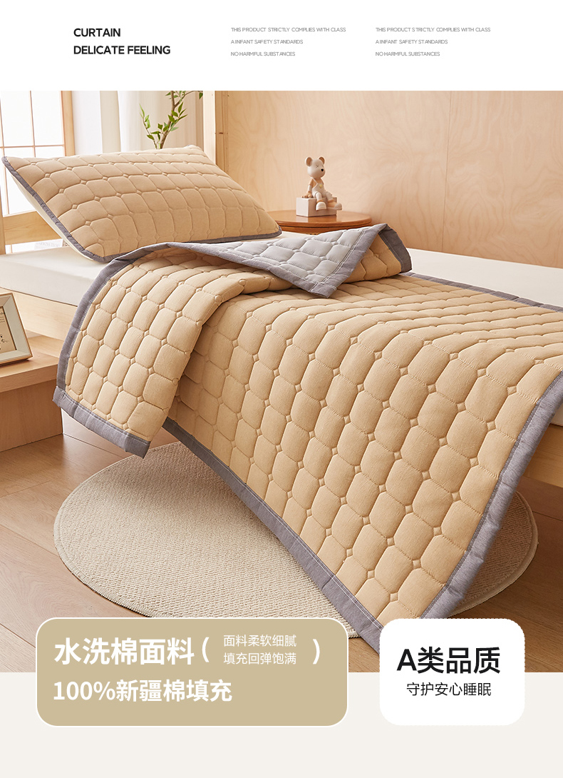 • 91家纺网 家纺一手货源 找家纺 暖季家纺 2025新款A类水洗棉学生絮叠床护垫 絮叠床护垫-卡其