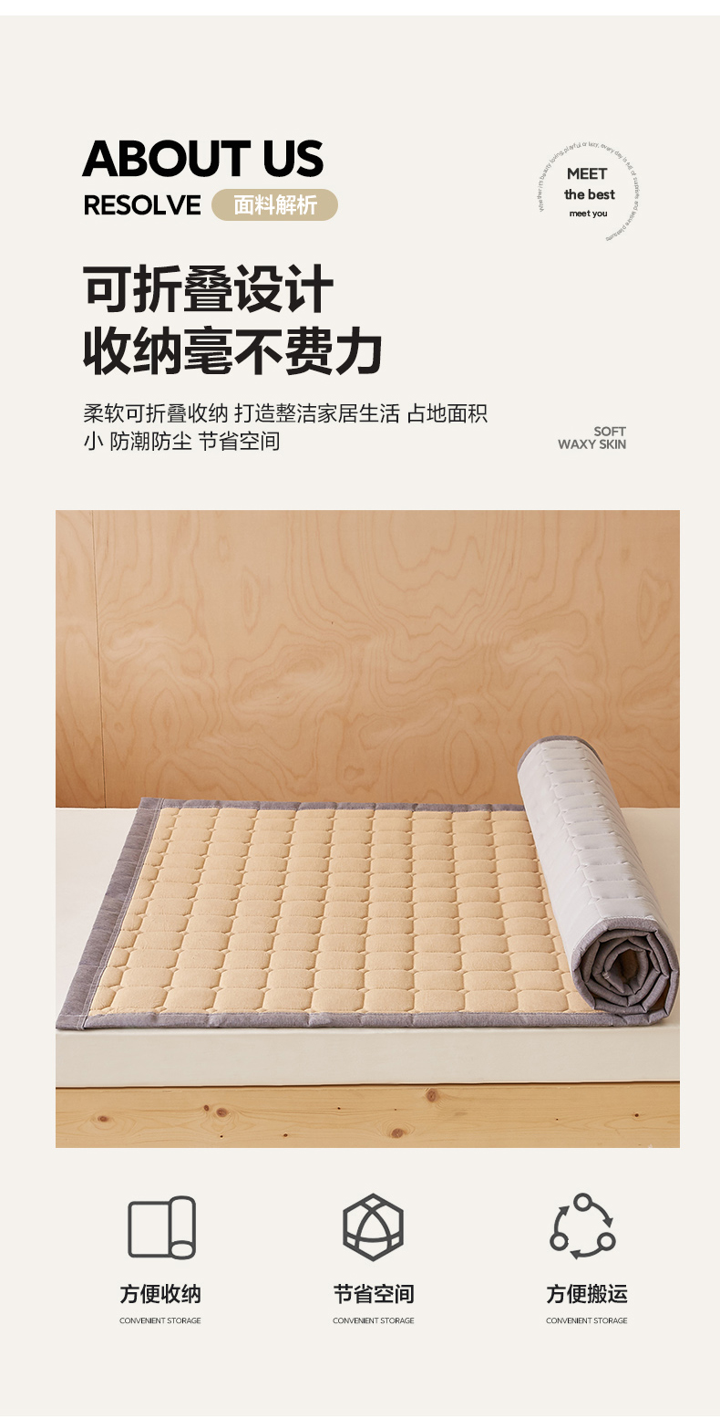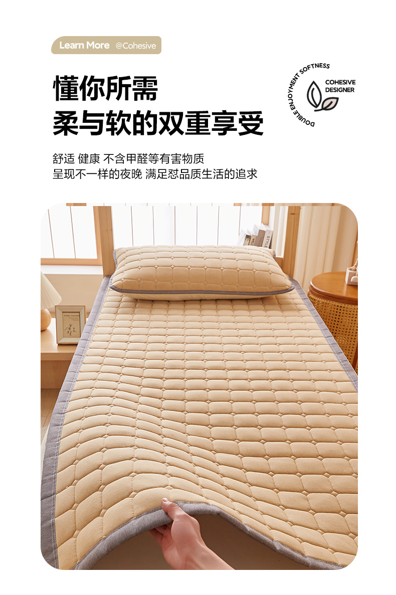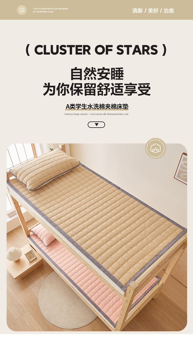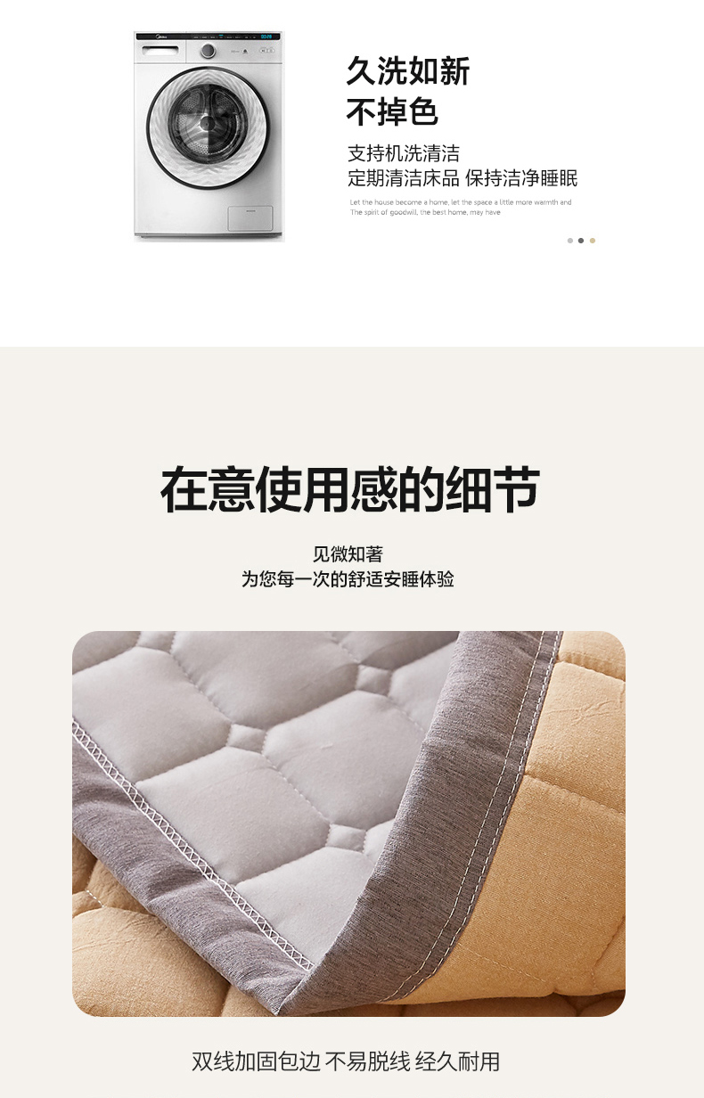 • 91家纺网 家纺一手货源 找家纺 暖季家纺 2025新款A类水洗棉学生絮叠床护垫 絮叠床护垫-卡其
