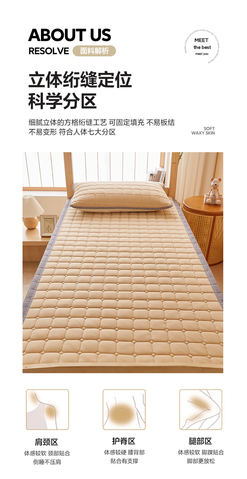 当前位置: 91家纺网 > 商品网购 > 床垫/床褥 > 暖季家纺 2025新款A类水洗棉学生絮叠床护垫 絮叠床护垫-卡其