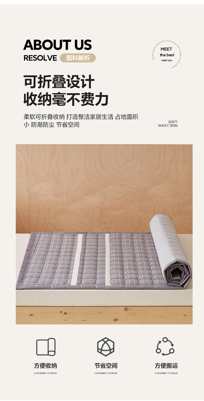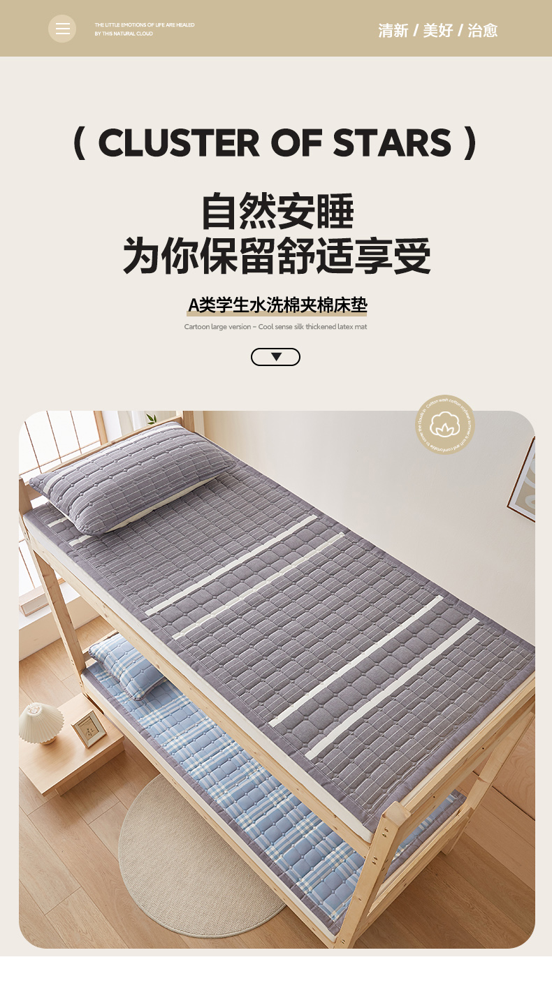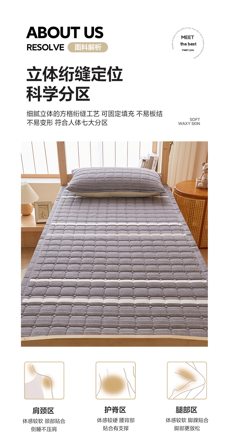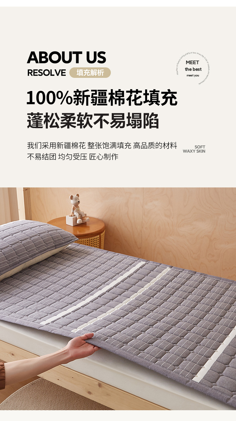 • 91家纺网 家纺一手货源 找家纺 暖季家纺 2025新款A类水洗棉学生絮叠床护垫 絮叠床护垫-英伦灰
