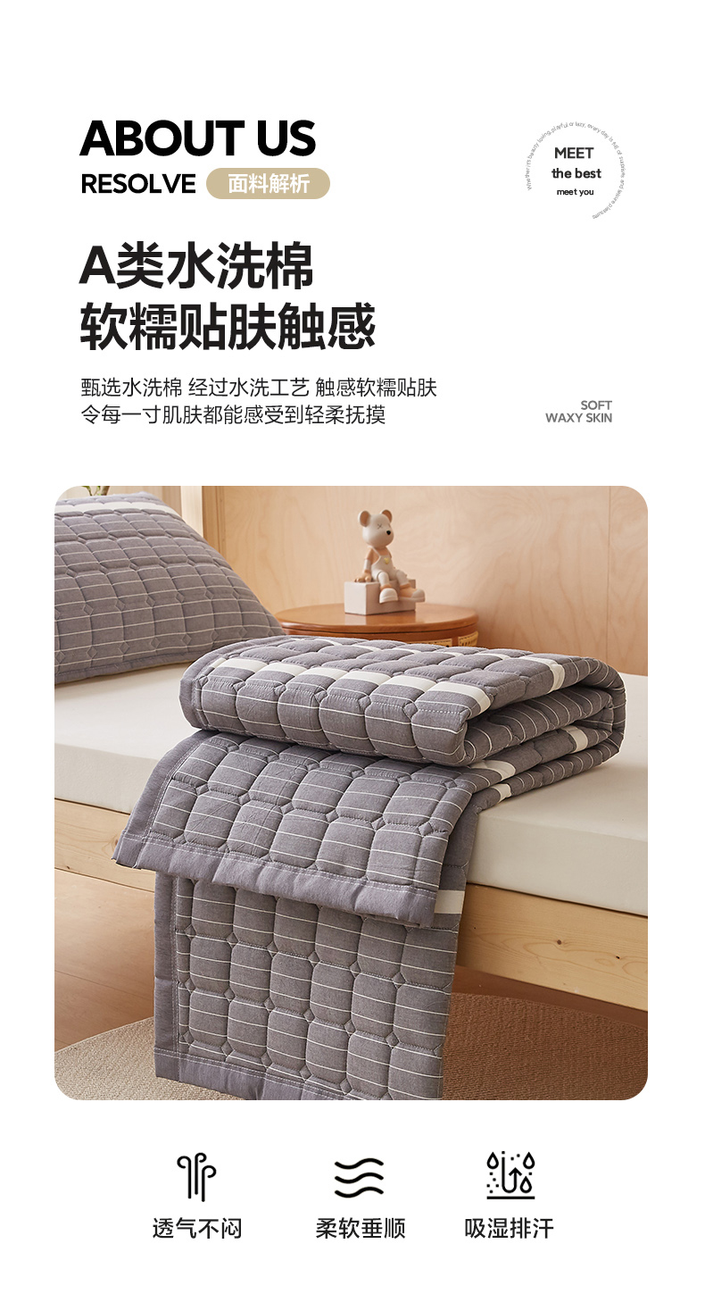暖季家纺 2025新款A类水洗棉学生絮叠床护垫 絮叠床护垫-英伦灰