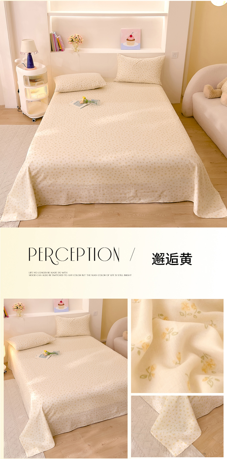 • 91家纺网 家纺一手货源 找家纺 DoDo 兜兜 2025新款全棉纯棉小温暖双层纱系列单床单【可定做尺寸】 邂逅-黄