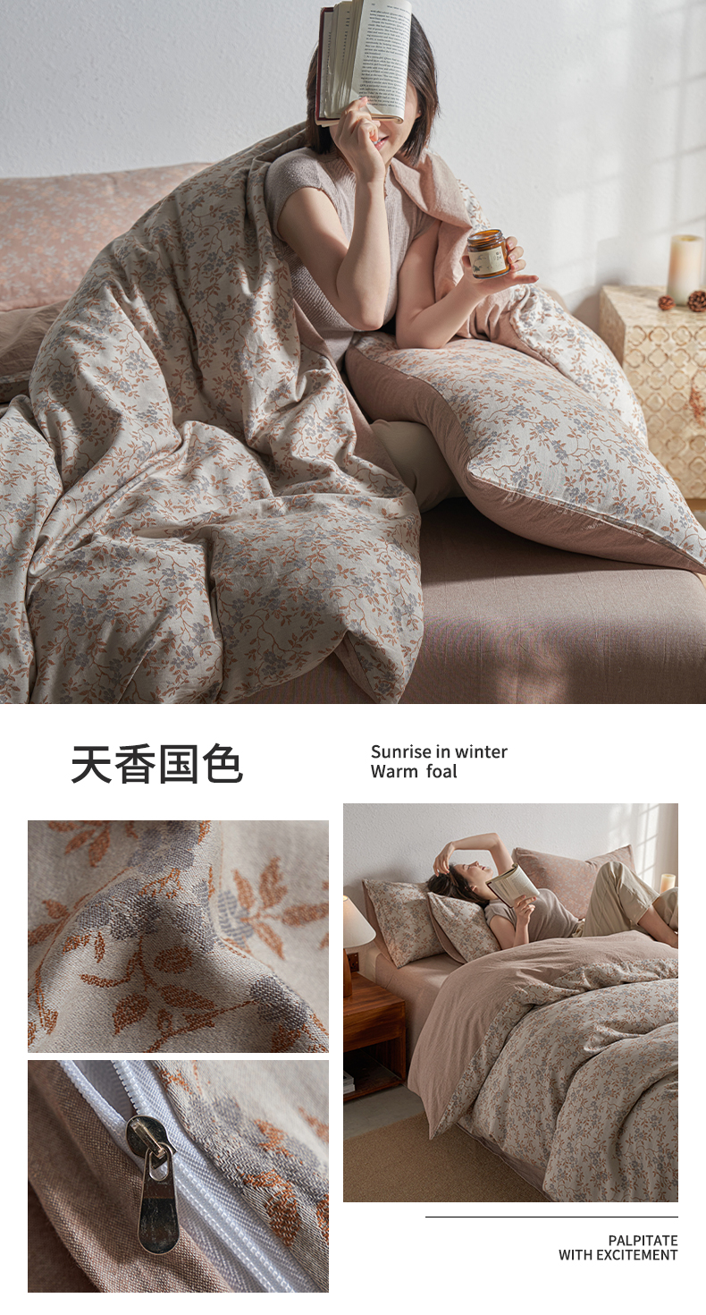商品名称:三朵家纺 2025新款全棉纯棉水洗棉色织提花四件套 天香国色