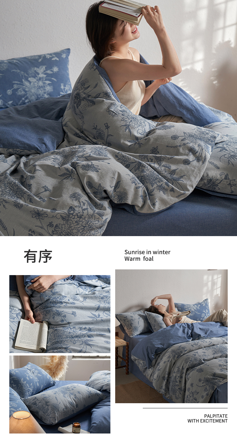 三朵家纺 2025新款全棉纯棉水洗棉色织提花四件套 天香国色