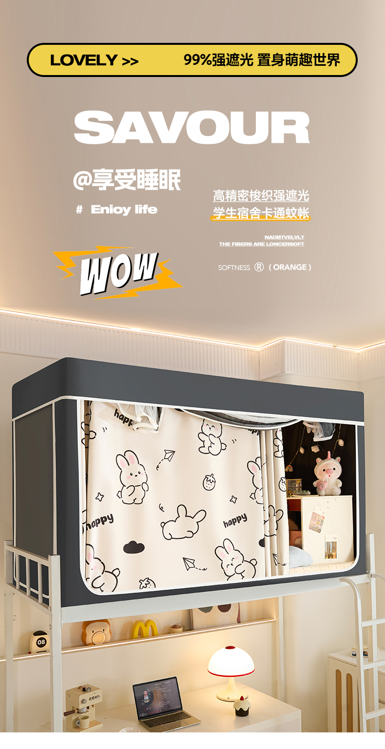 当前位置: 91家纺网 > 商品网购 > 床上用品 > 蚊帐 > 学生蚊帐 > 世婕 2025新款高精密梭织强遮光学生宿舍卡通蚊帐 梭织-草莓兔