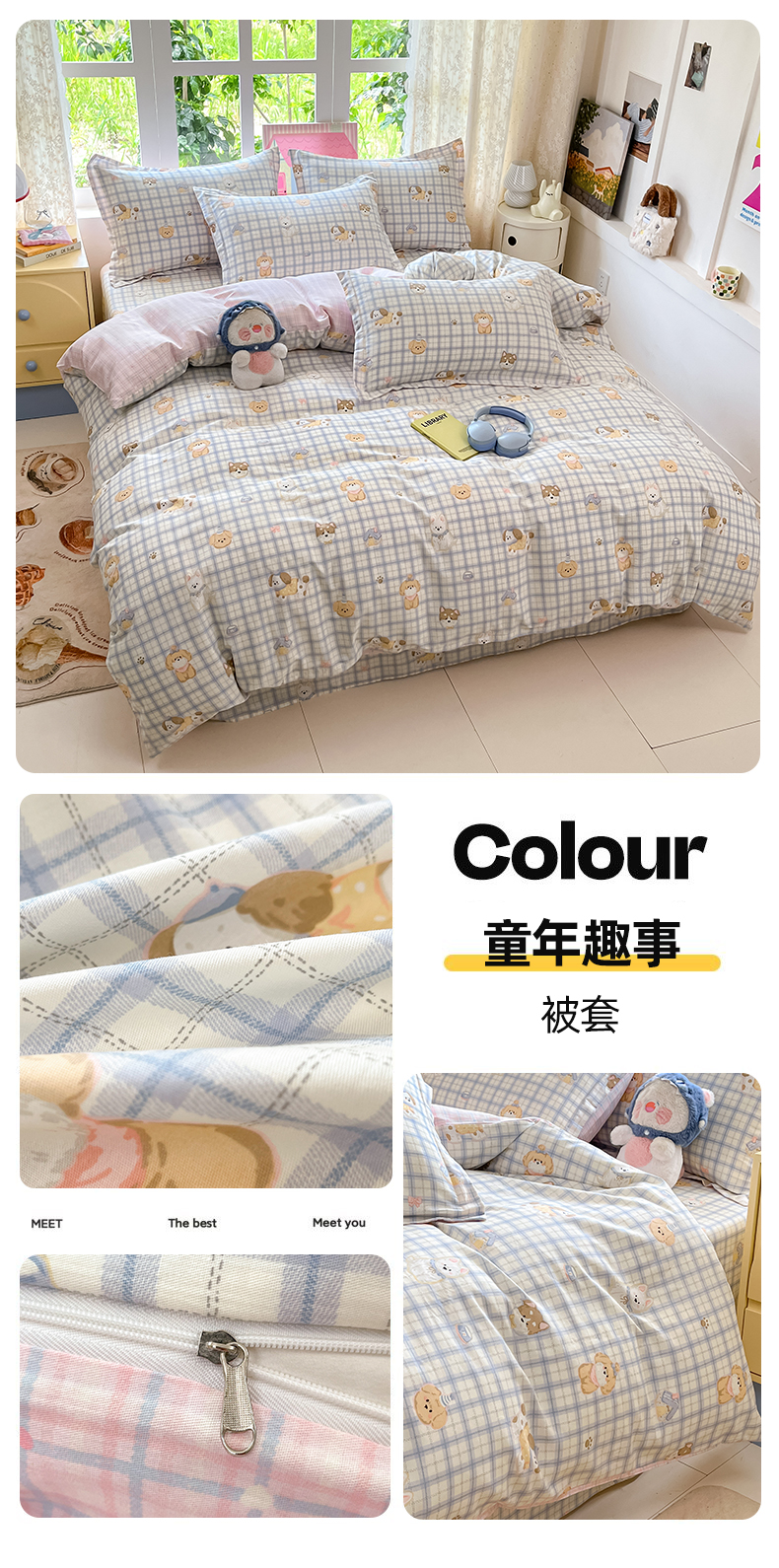 (总)莱通家纺 2025新款12868学生宿舍三件套,波比狗,布兰卡,达乐宝贝,蛋糕熊,调皮熊猫,格利亚,格瑞,果酱电台,花花小汪,花田小狗,简昔,旧书折痕,米洛,魔法伙伴,奶呼兔兔,奶昔蓝,泡芙小狗,浅影摇曳,糖纸童年,甜桔,童年趣事,童趣伙伴,心连心,新格拉,悬浮晶阵,英伦风,樱姿,月光摇蓝草,云朵相馆,正交暮色
