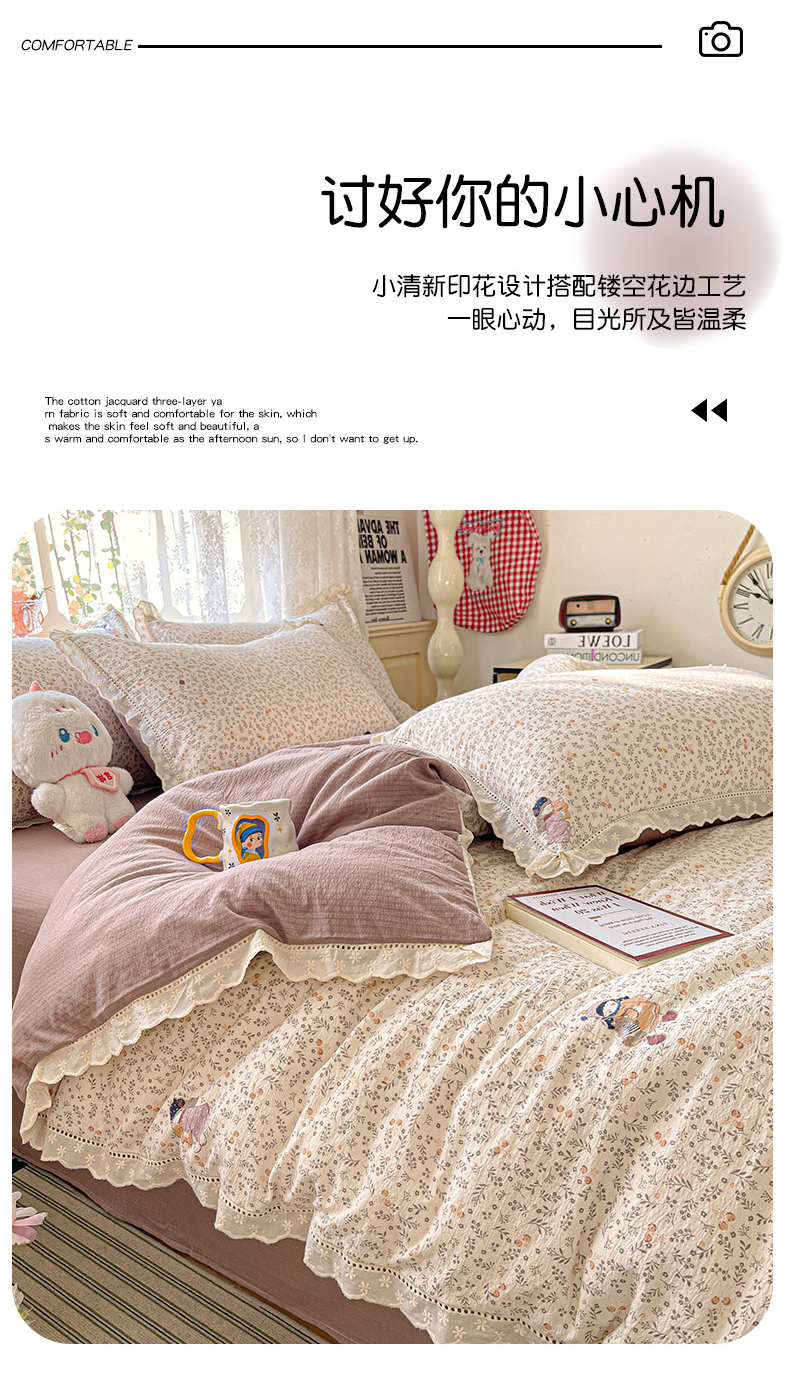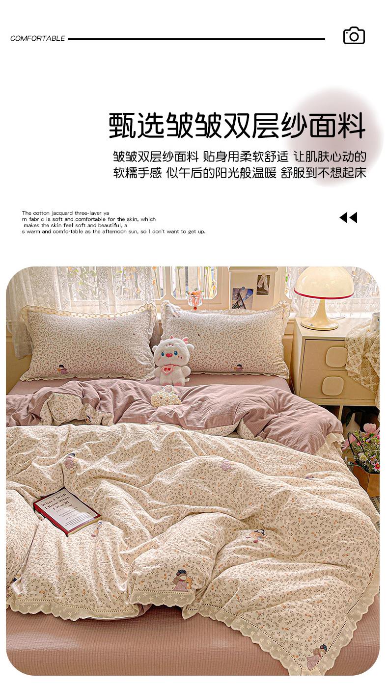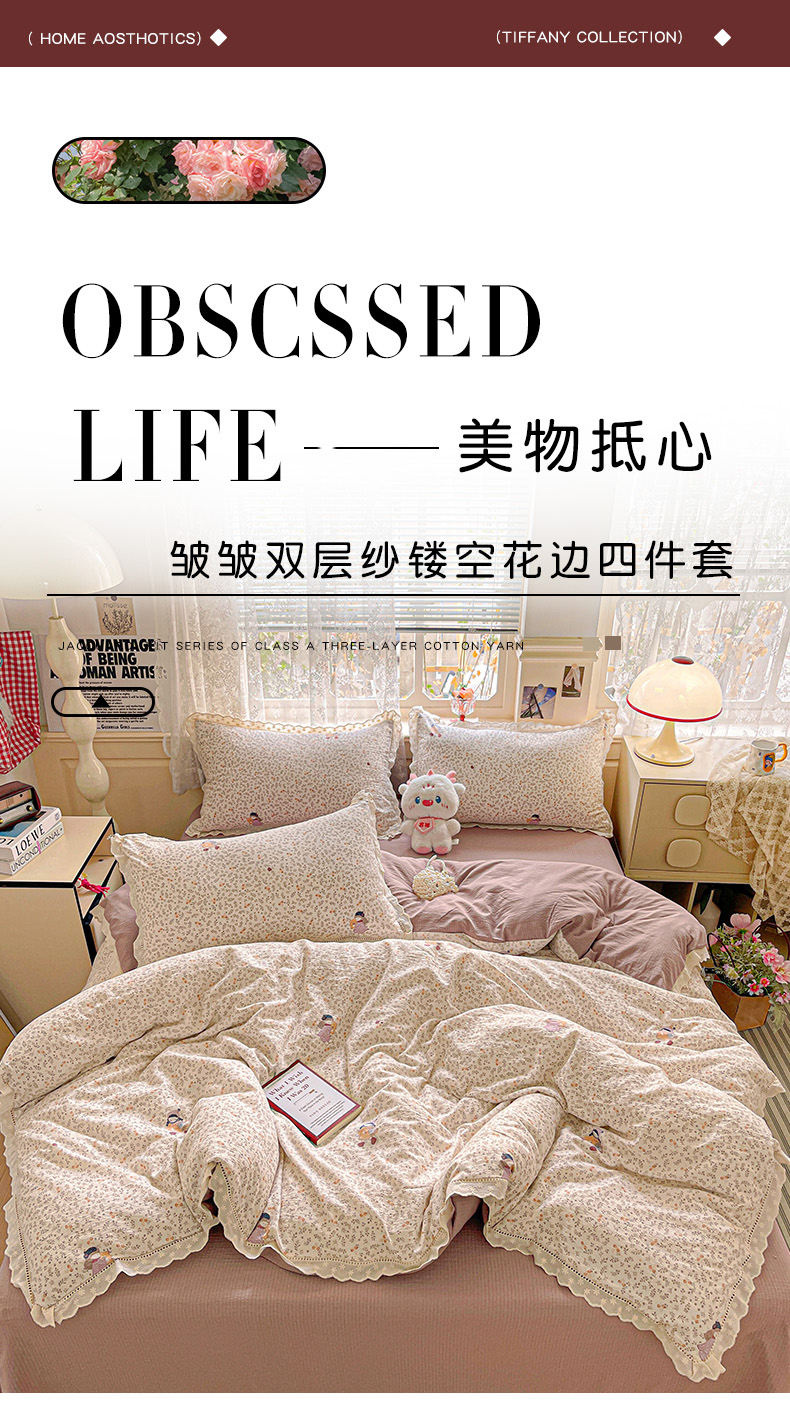 (总)水木坊 2025新款全棉镂空花边皱皱双层纱四件套专供网销直播,风与铃兰,蓝风铃,蓝茵河畔,洛神-粉,麦田,萌动,慕斯蓝,娜美布蕾,森林与免,兔叽奶糖,小狗布丁,雅韵,盐系少女,一帘幽梦,紫陌