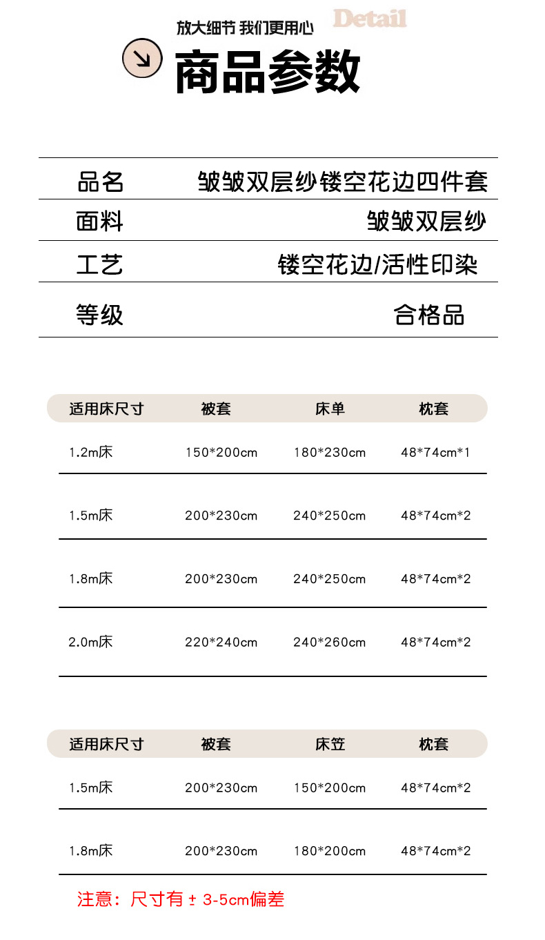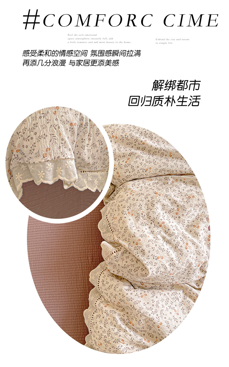 商品名称:水木坊 2025新款皱皱双层纱镂空花边四件套 娜美布蕾
