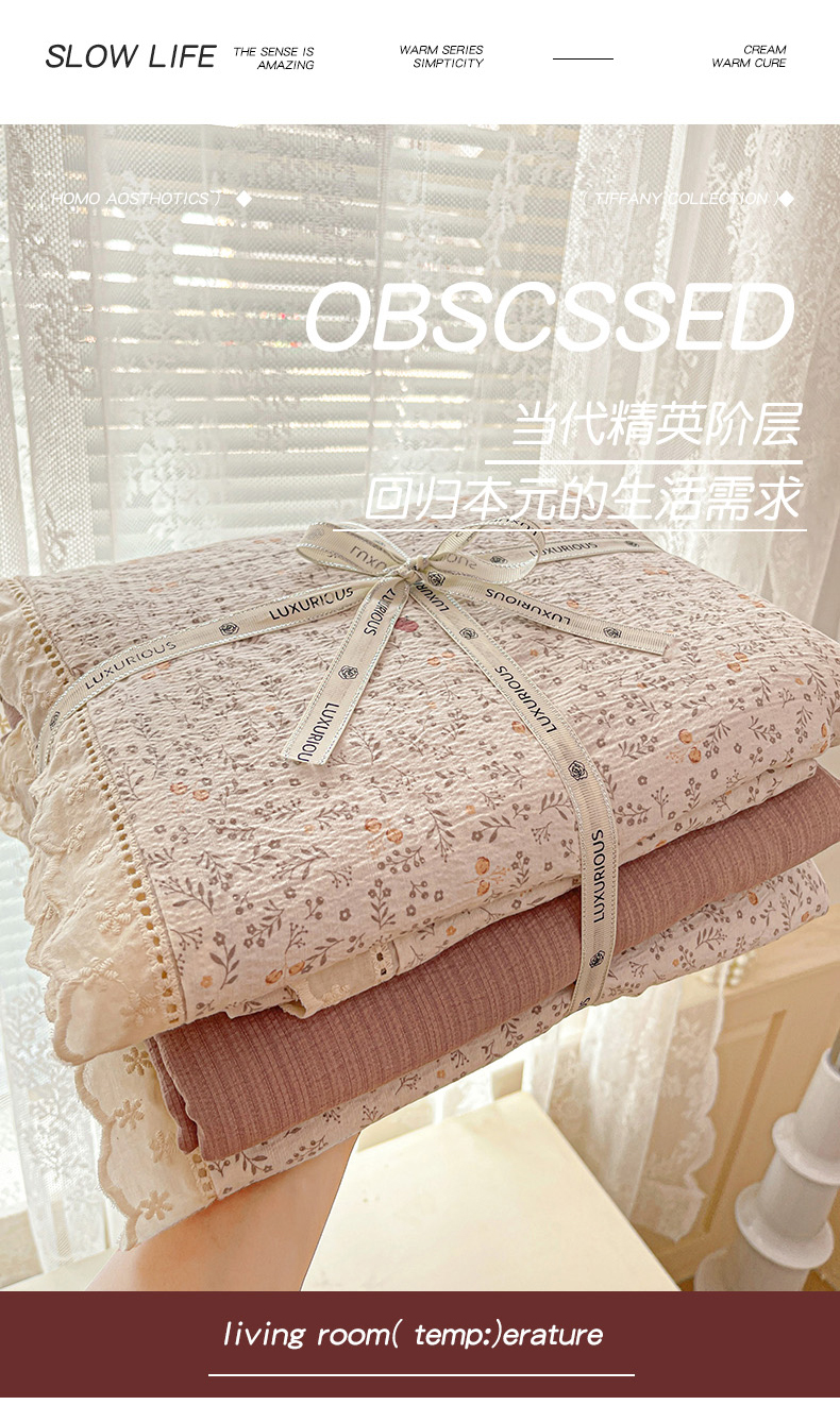水木坊 2025新款皱皱双层纱镂空花边四件套 娜美布蕾