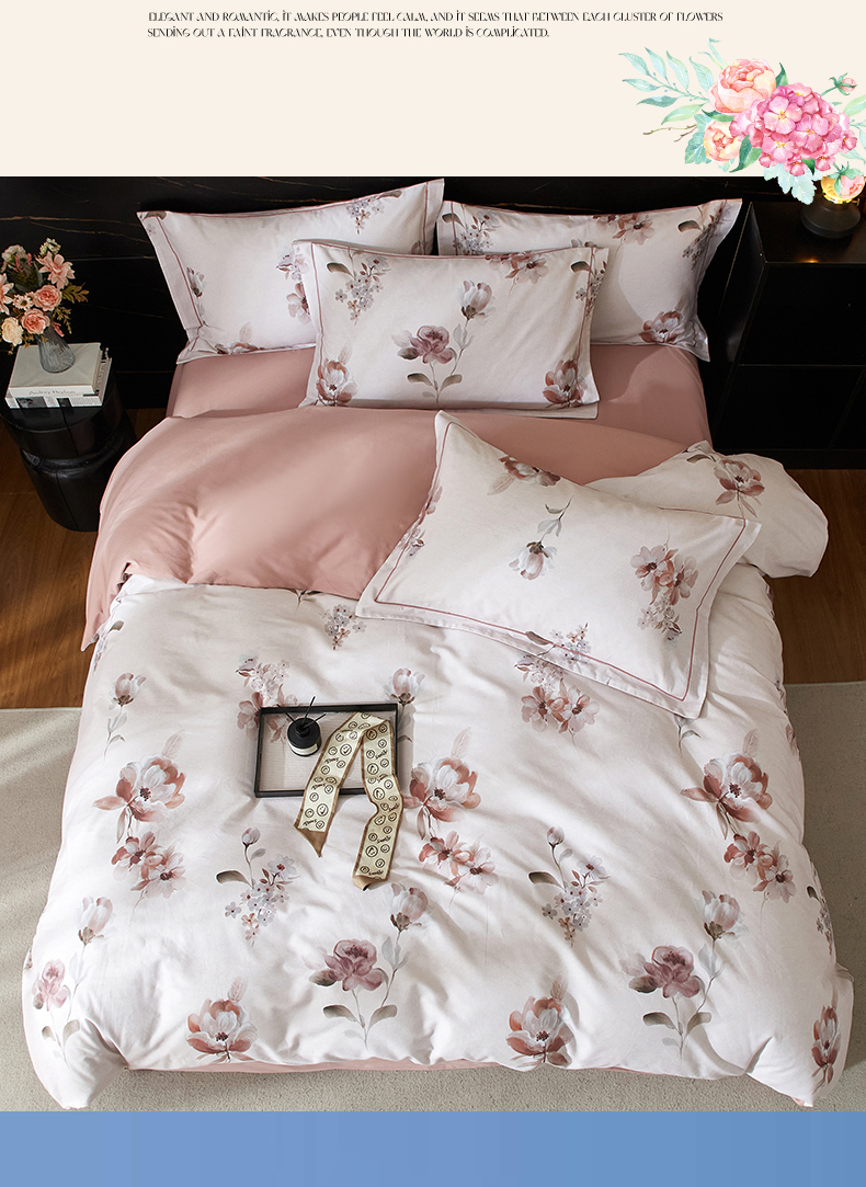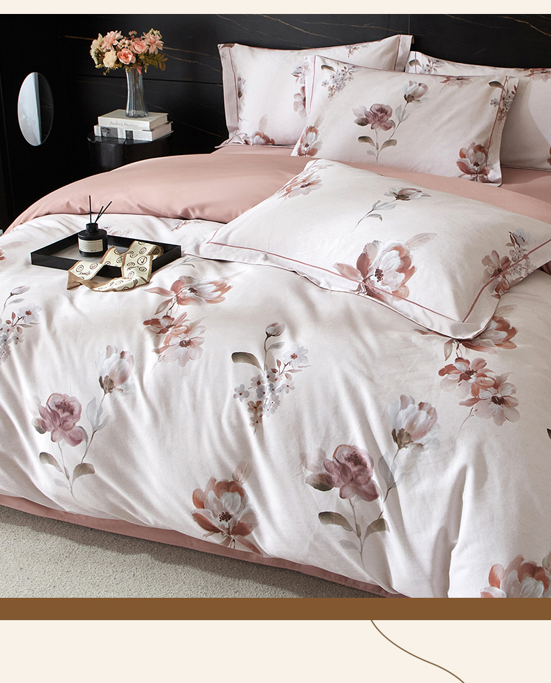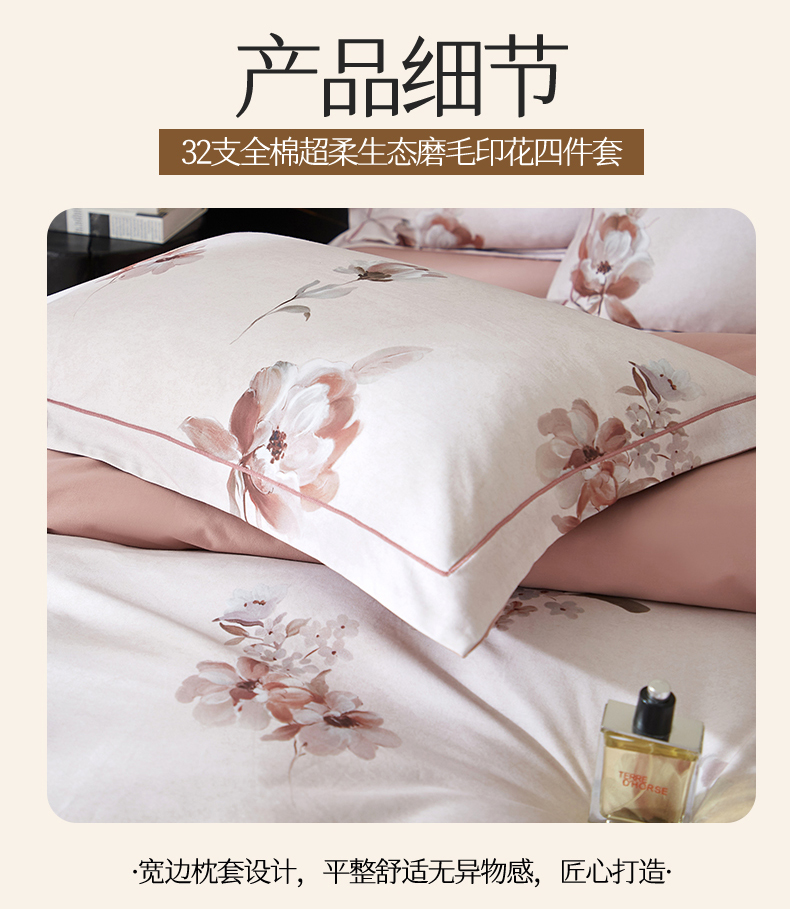 商品名称:(总1)曼秀琳2025秋冬新款全棉超柔数码印花磨毛四件套(32*21支)花棠-粉