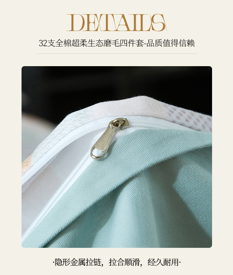 商品名称:曼秀琳 2025秋冬新款32支超柔生态磨毛四件套 闲偶-绿