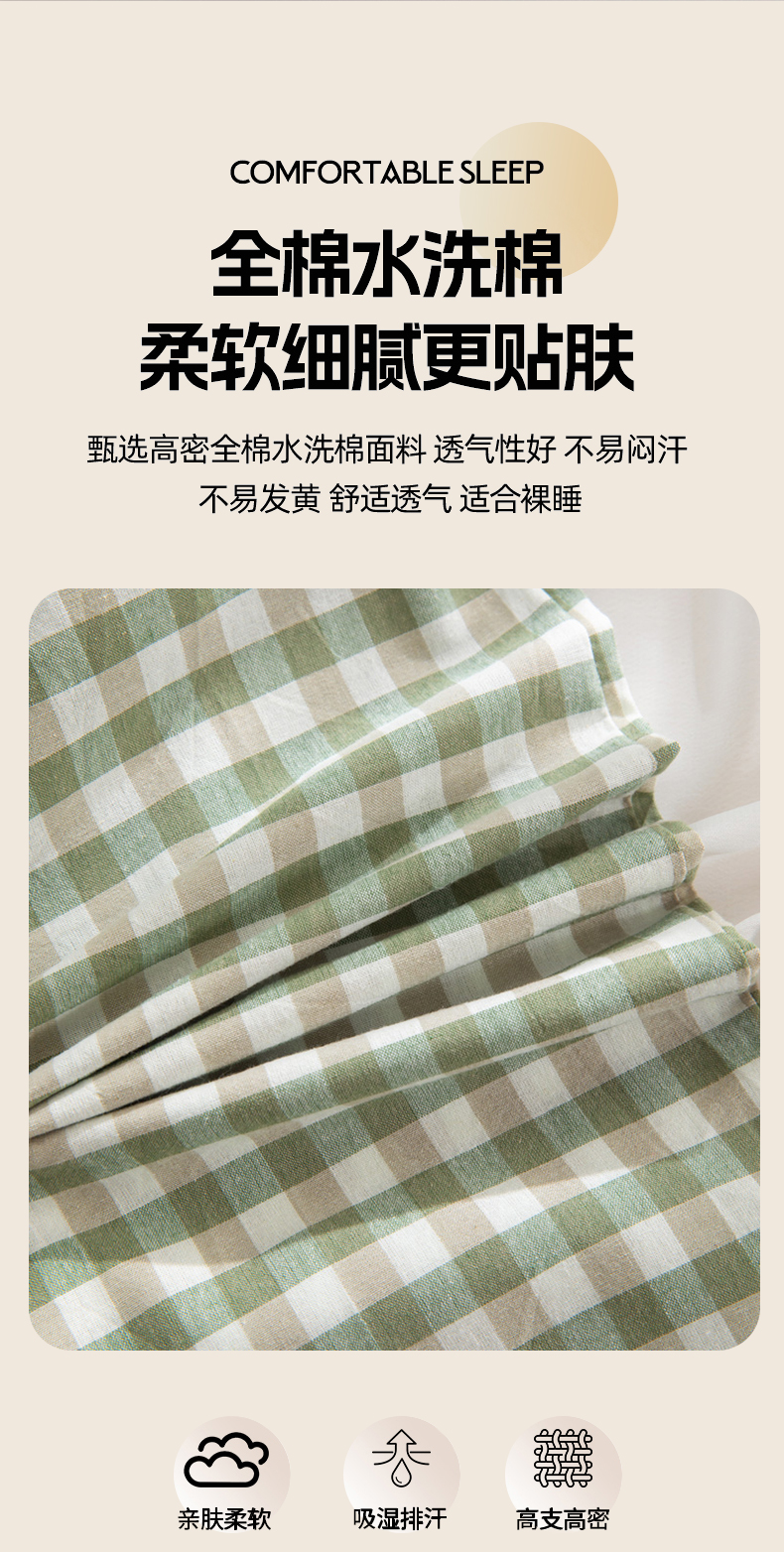 商品名称:佳合枕芯 2025新款新品全棉水洗棉拼色小方格荞麦枕头枕芯 拼色小方格荞麦枕-绿色 30*50cm/只