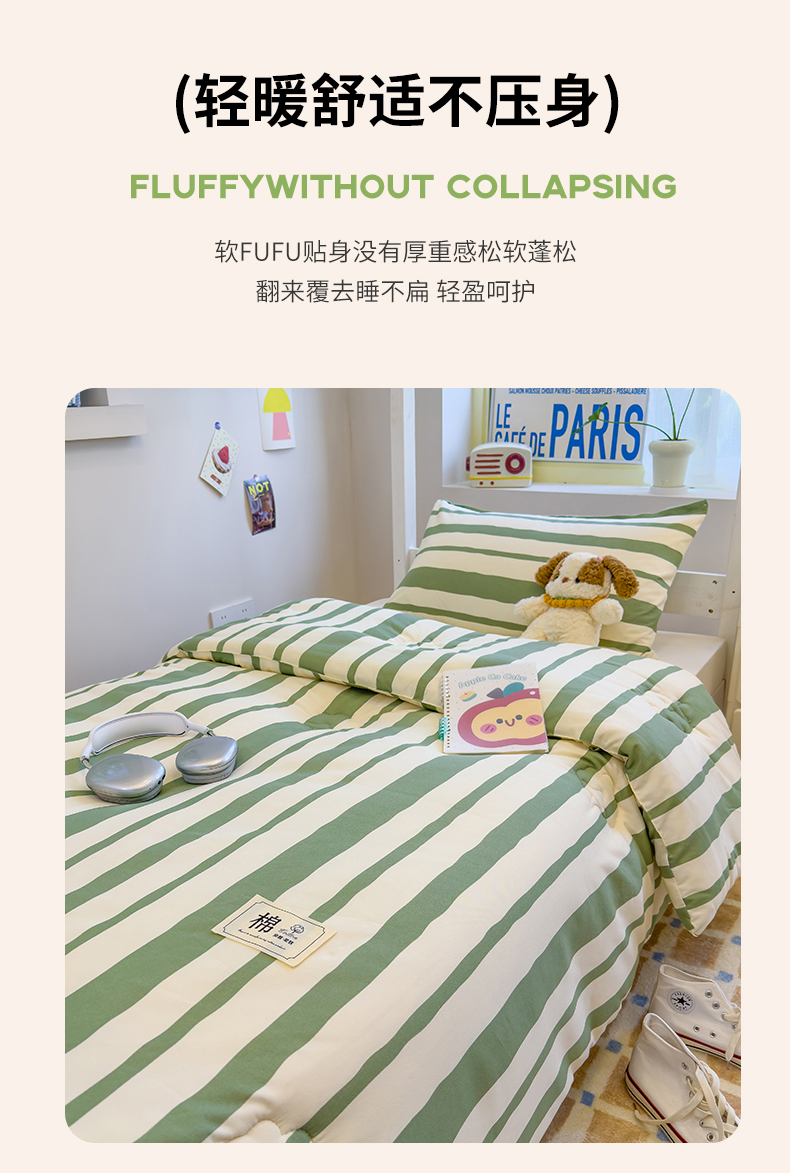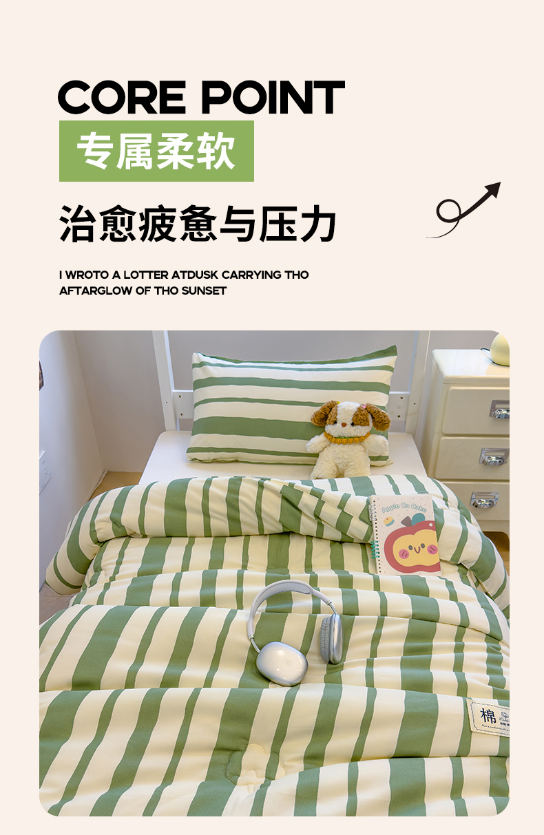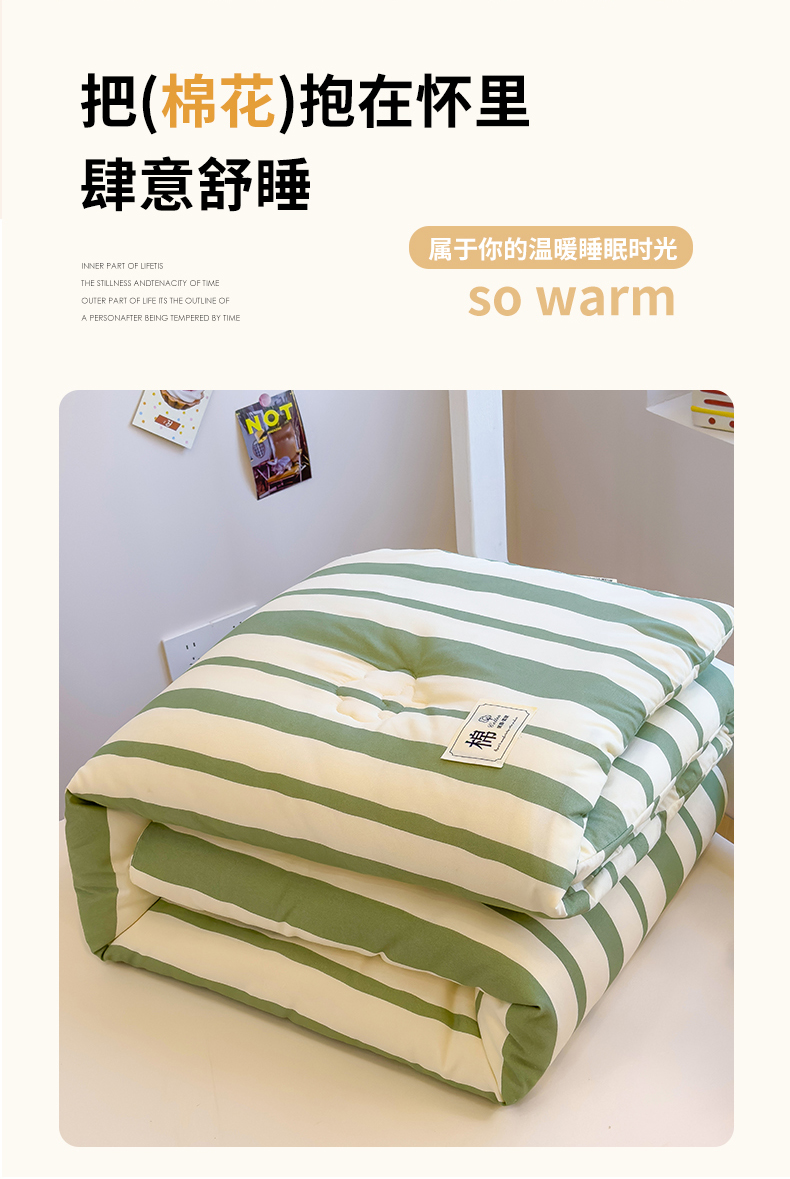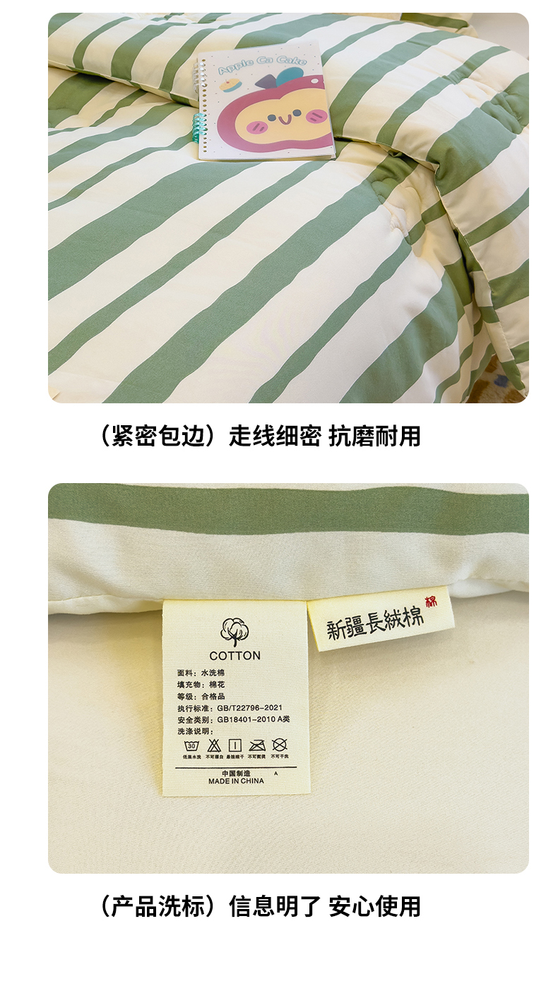 商品名称:蓝冰家纺 2025新款学生新疆棉花被被子被芯 绿白宽条