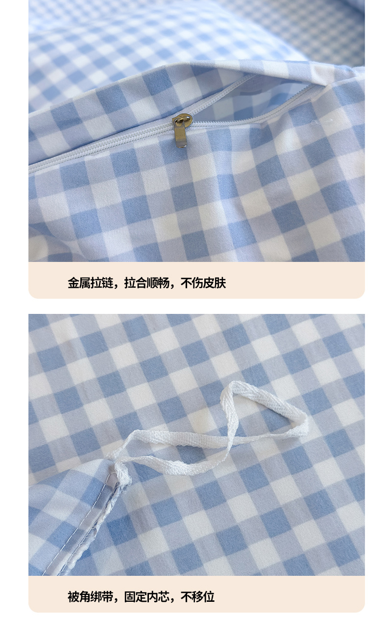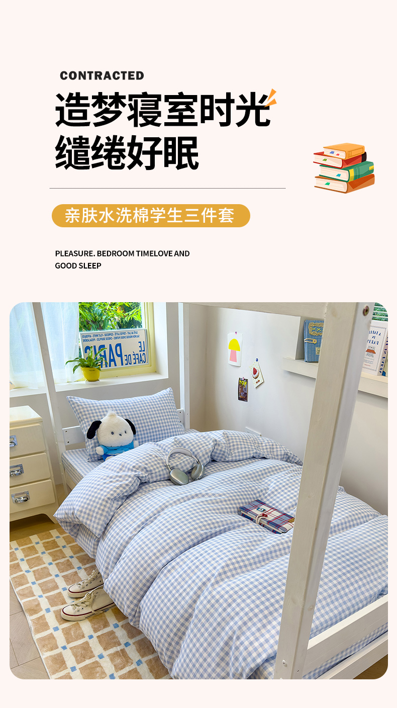 蓝冰家纺 2025新款学生水洗棉宿舍上下铺三件套 浅蓝条纹