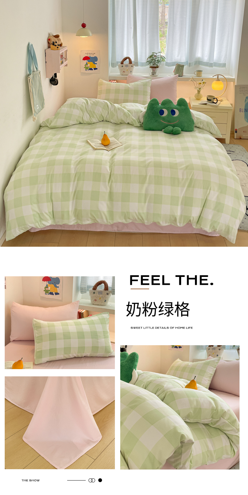 (总)雨帆 2025新款卡通水洗棉毛巾绣四件套,粉+蓝大格,粉格芝士,绿格芝士,芝士粉格