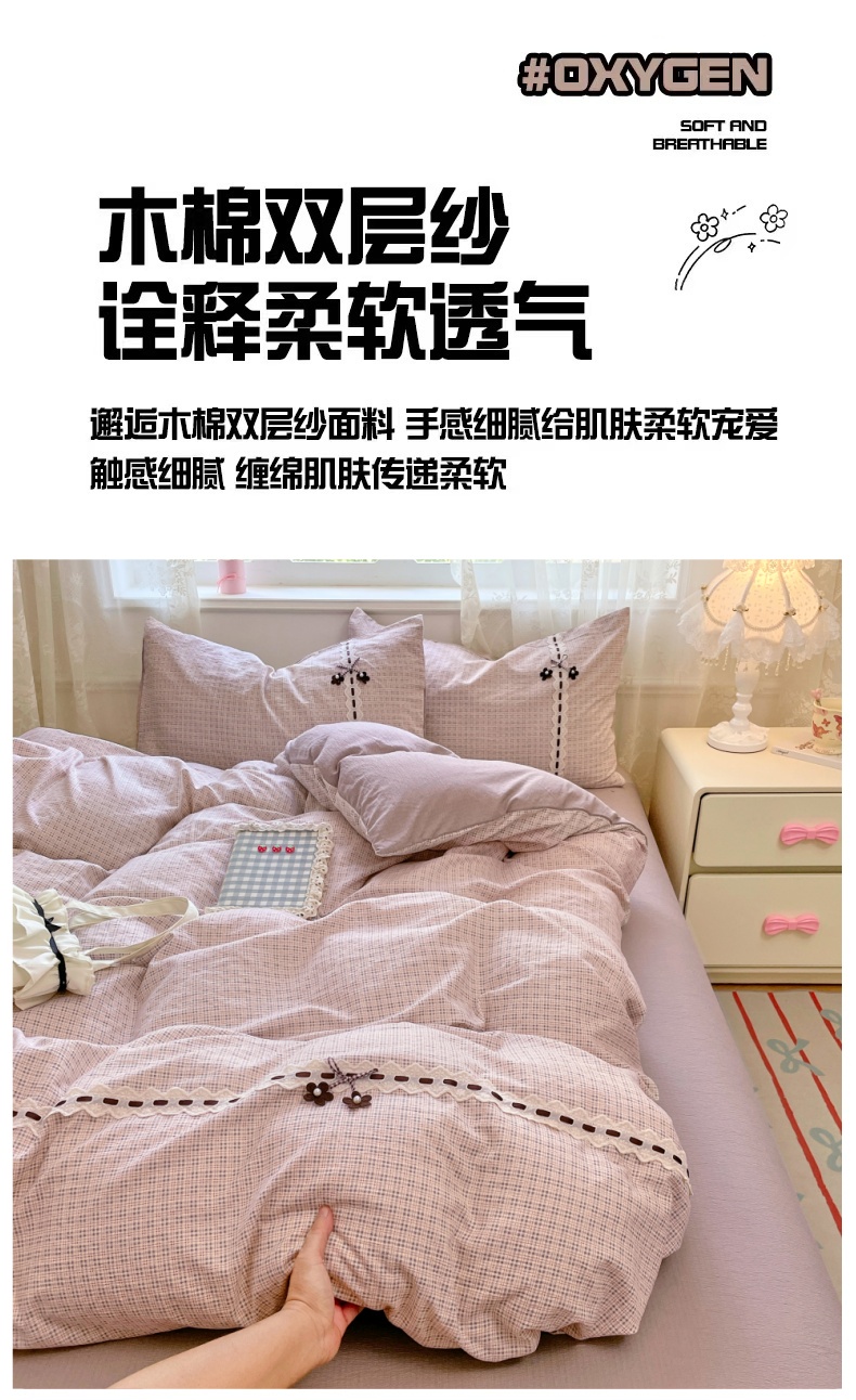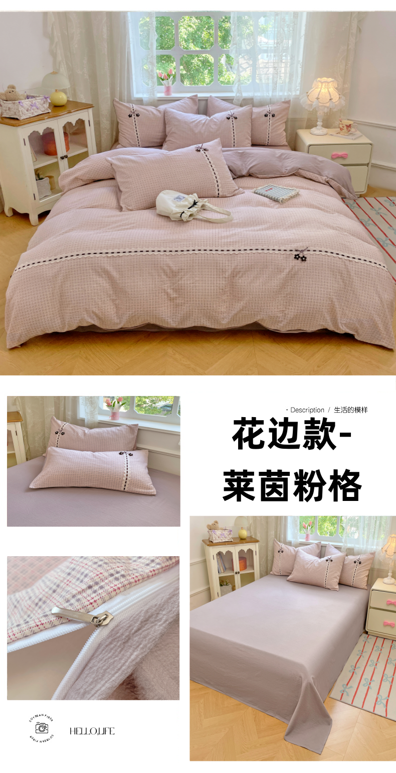 当前位置: 91家纺网 > 商品网购 > 床品套件 > 四件套 > 双层纱四件套 > 梦舒羽2025新款双层纱蕾丝花边四件套学生宿舍床单款床上用品四件套 蕾丝花边-莱茵粉格