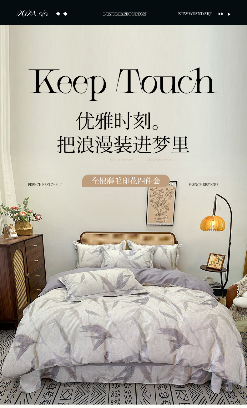 当前位置: 91家纺网 > 商品网购 > 床品套件 > 四件套 > 全棉普通四件套 > 橙艺家居 2025新款秋冬全棉纯棉磨毛四件套 清风徐来