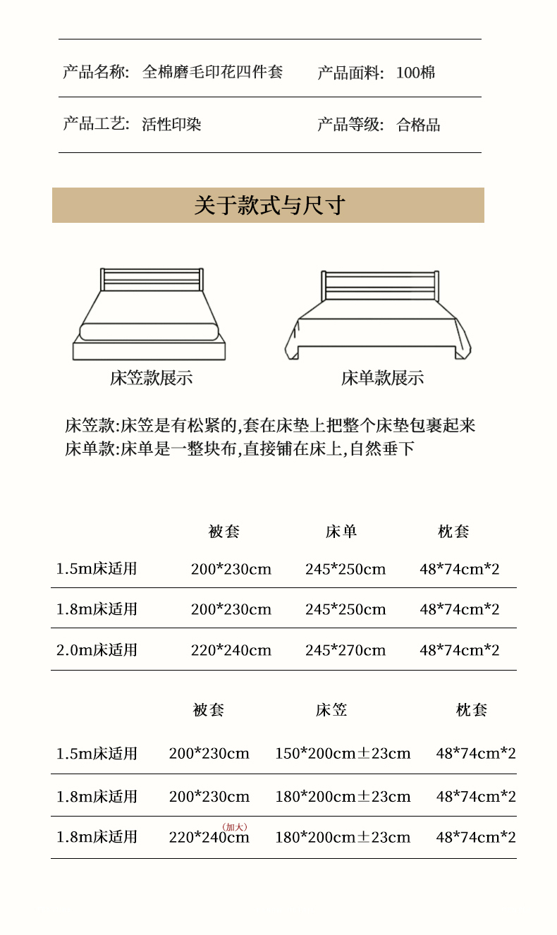 【床笠款】1.8四件套-被套200x230 | ¥155.00 |