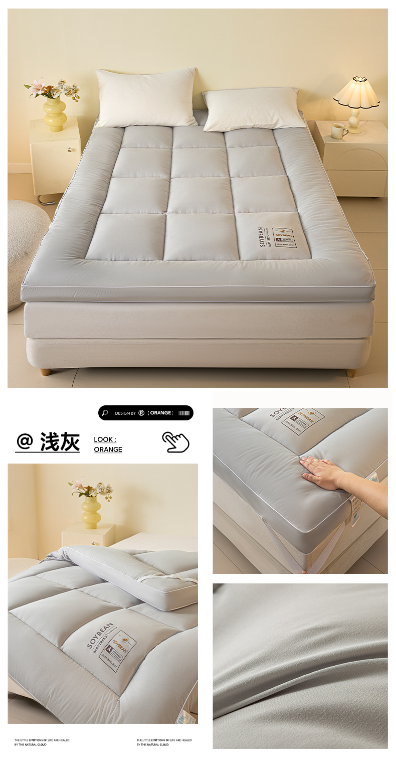 (总)曼尼家纺 2025新款A类水洗棉8厘米立体床褥床垫,米白,浅灰