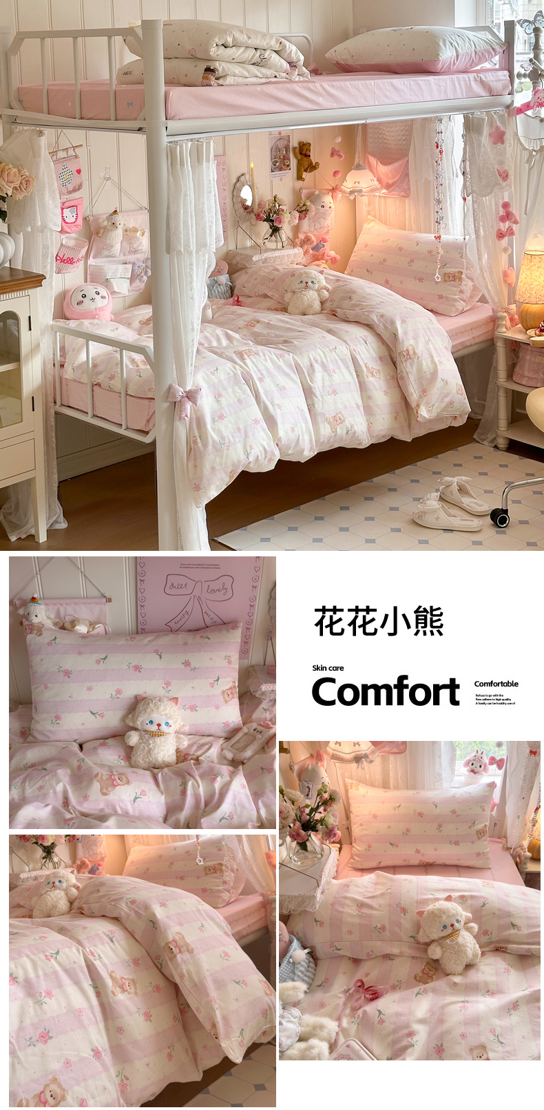 商品名称:Sweet dreams甜梦 2025新款学生床全棉纯棉三套件学生三件套宿舍三件套上下铺三件套 粉色猫猫