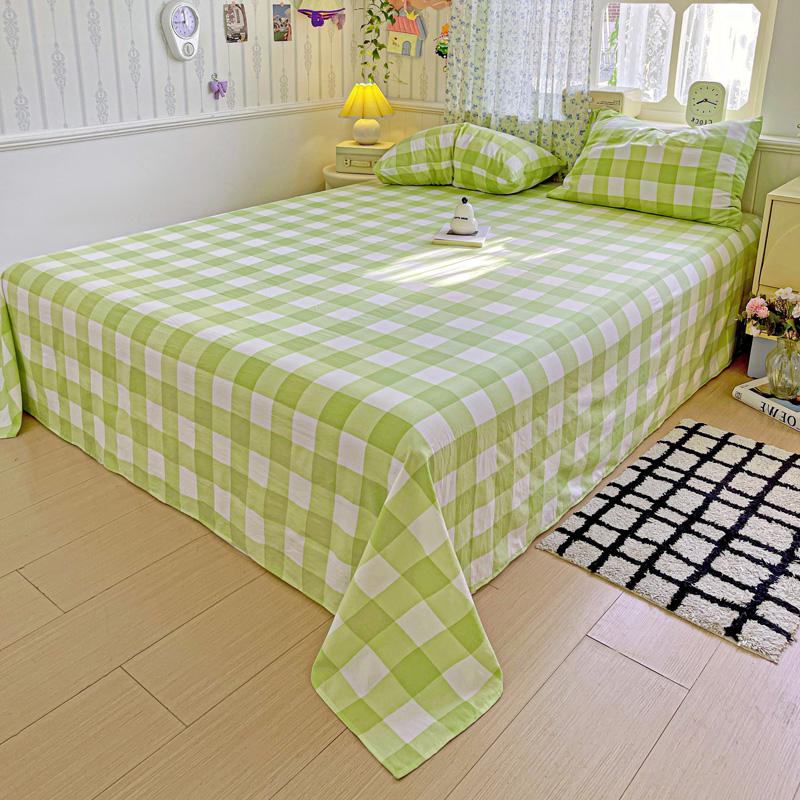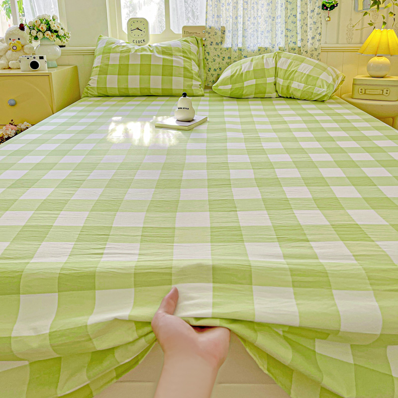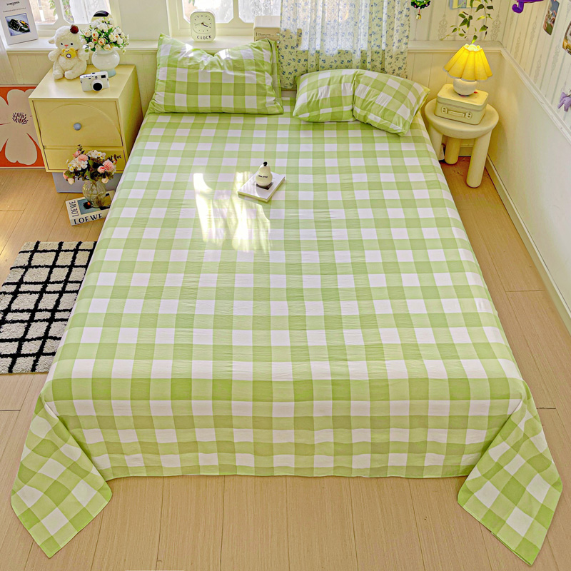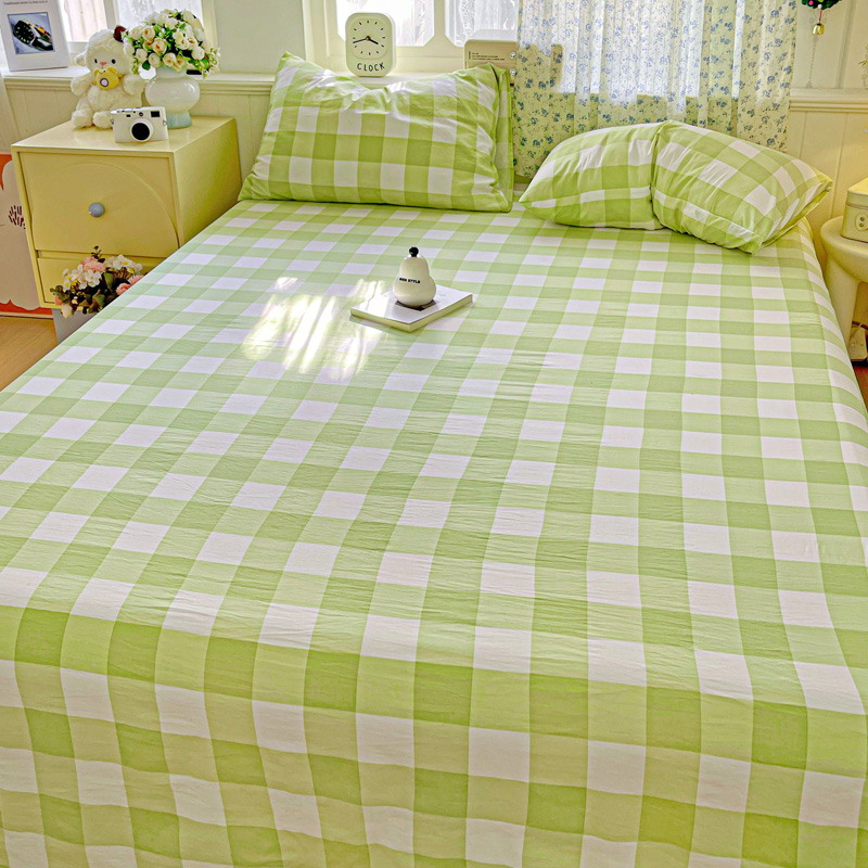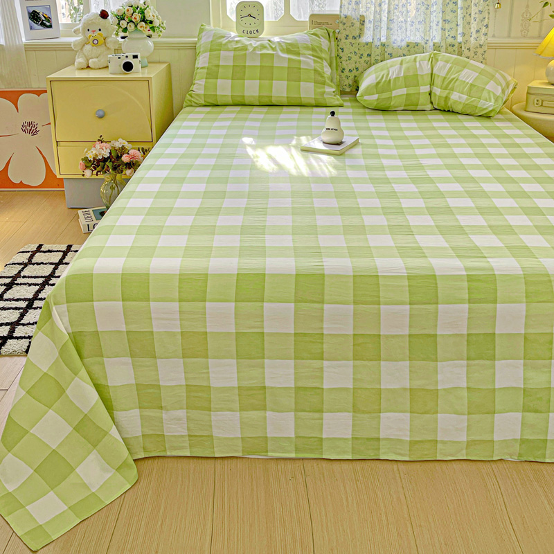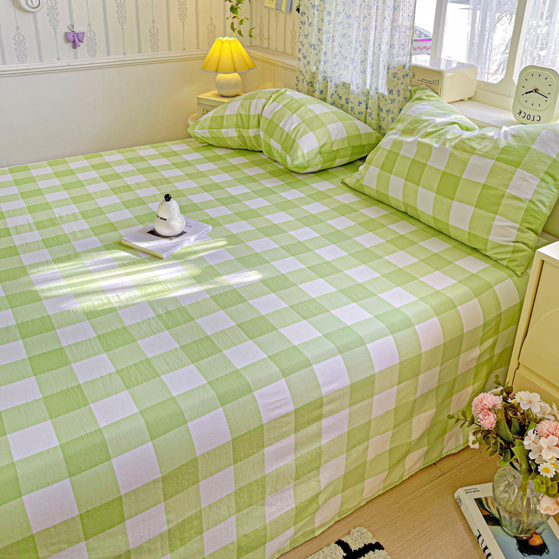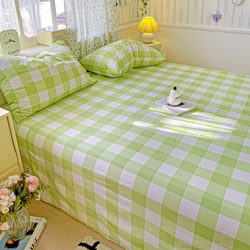 繁花家居 2025软爆高克重水洗棉床单床笠单件 学生季跑量款 绿方格