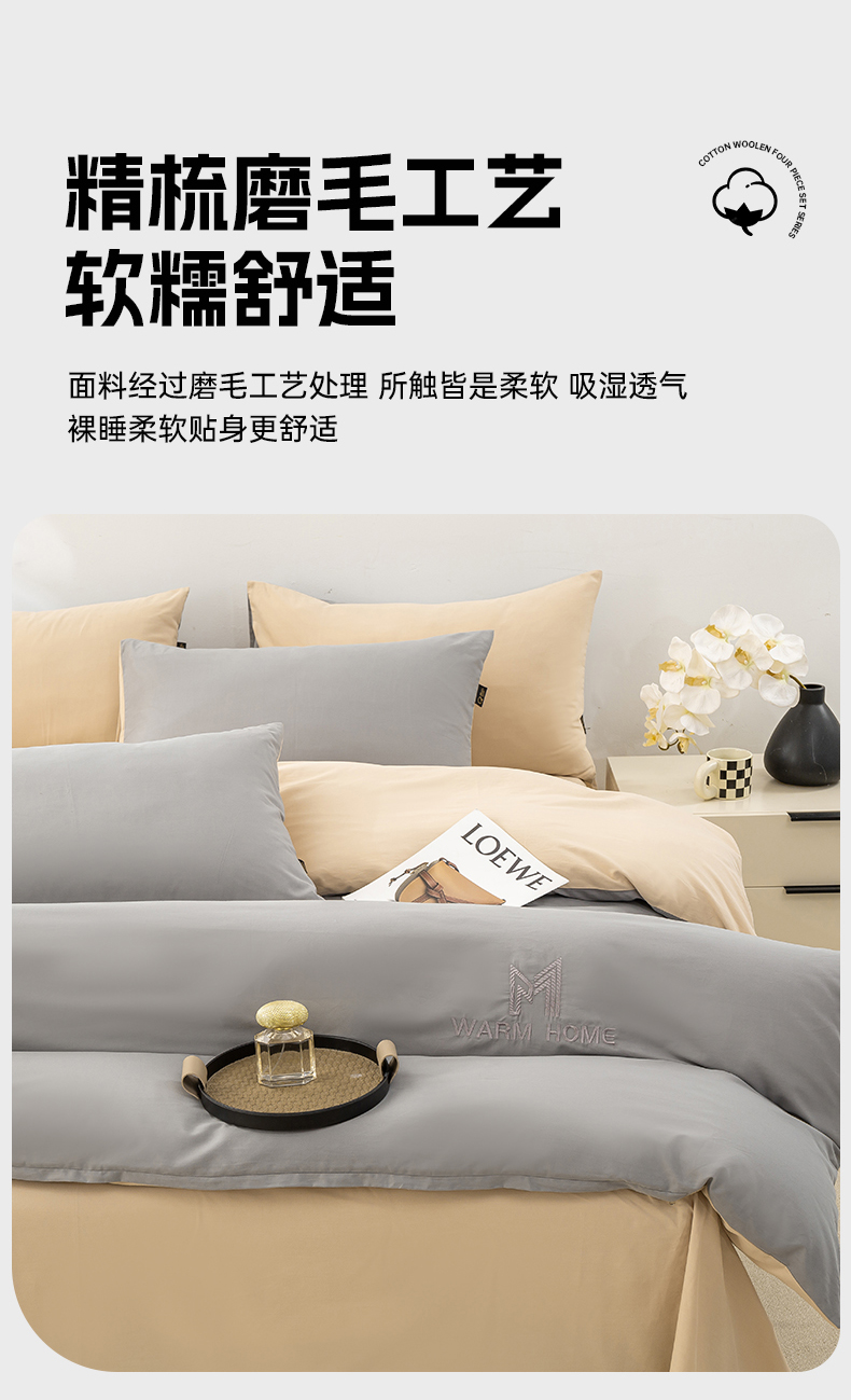 当前位置: 91家纺网 > 商品网购 > 床品套件 > 四件套 > 全棉普通四件套 > 沃尔居 2025新款秋冬全棉加厚磨毛四件套纯棉床单被套床笠纯色三件套(提供买家秀) 梦境--暖灰棕色