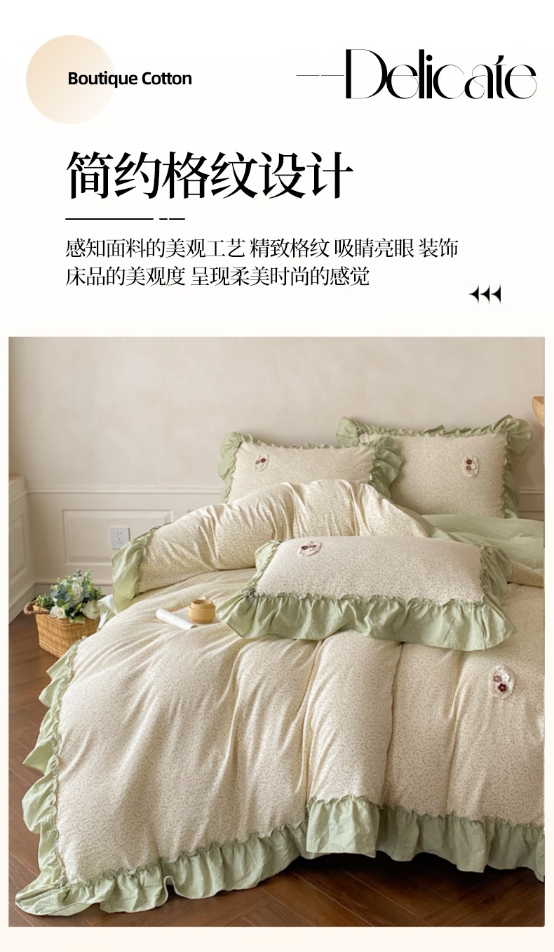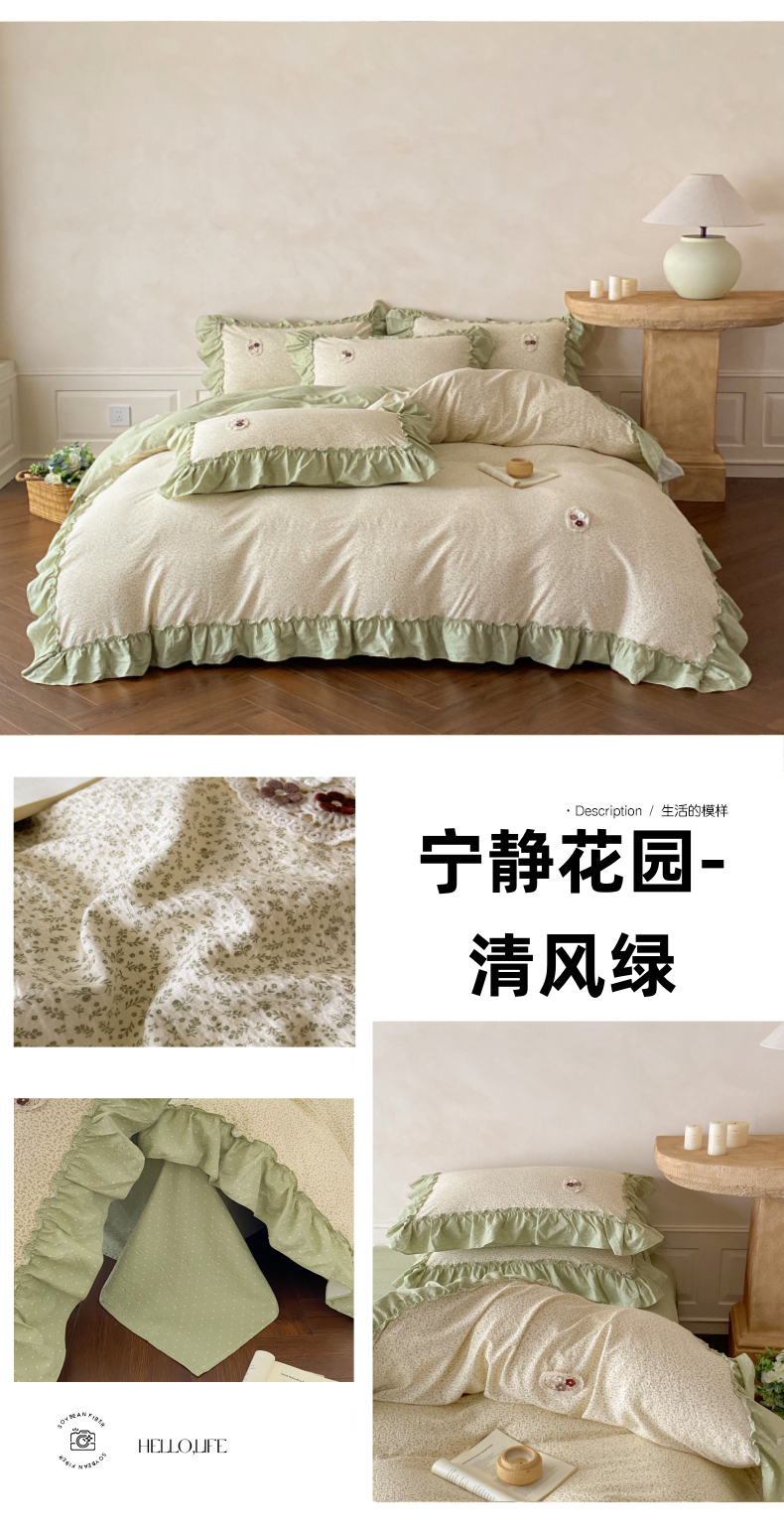 当前位置: 91家纺网 > 商品网购 > 床品套件 > 四件套 > 梦舒羽2025新款波点花边四件套-宁静花园 宁静花园-清风绿