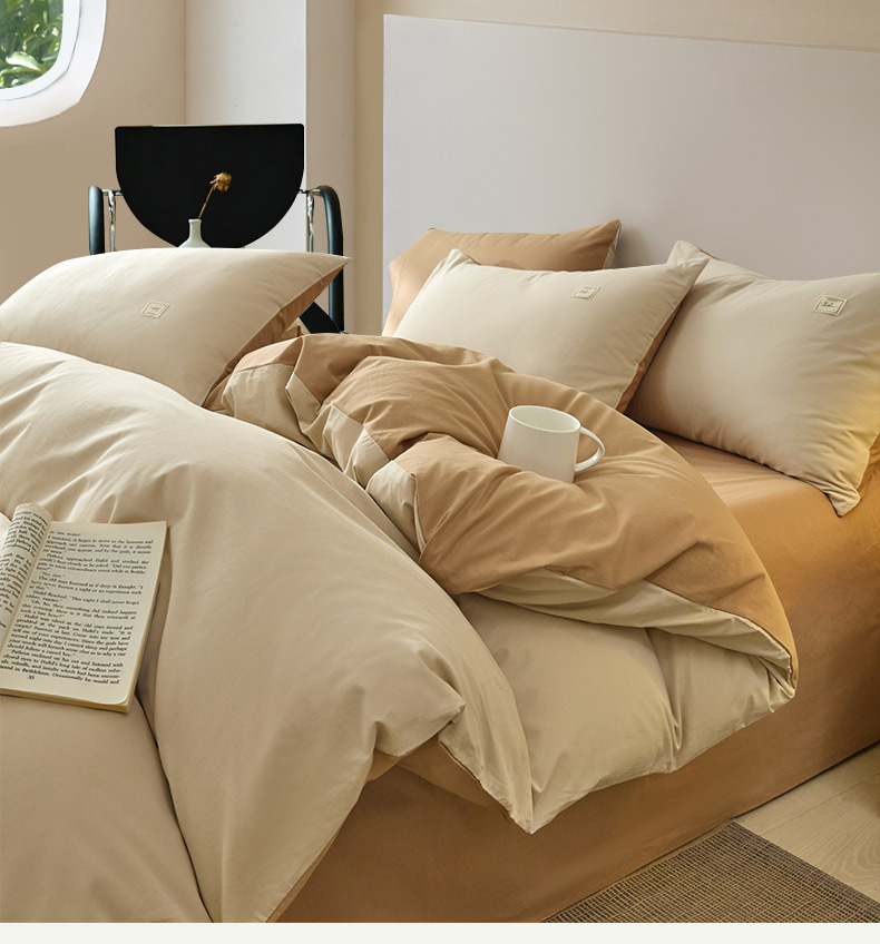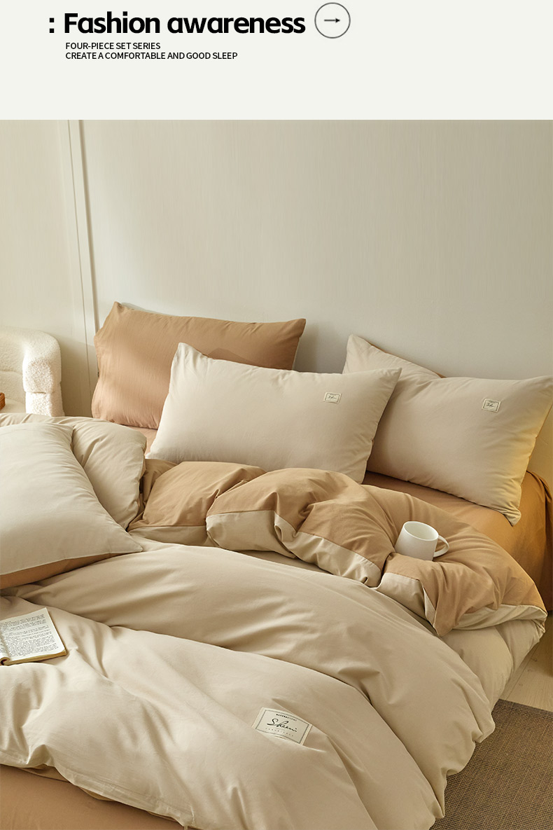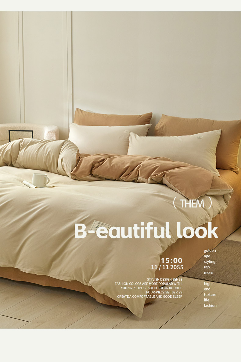 当前位置: 91家纺网 > 商品网购 > 床品套件 > 四件套 > 色织四件套 > 木子家纺 2025新款色织全棉40支水洗棉四件套--双拼第二组 米咖西柚