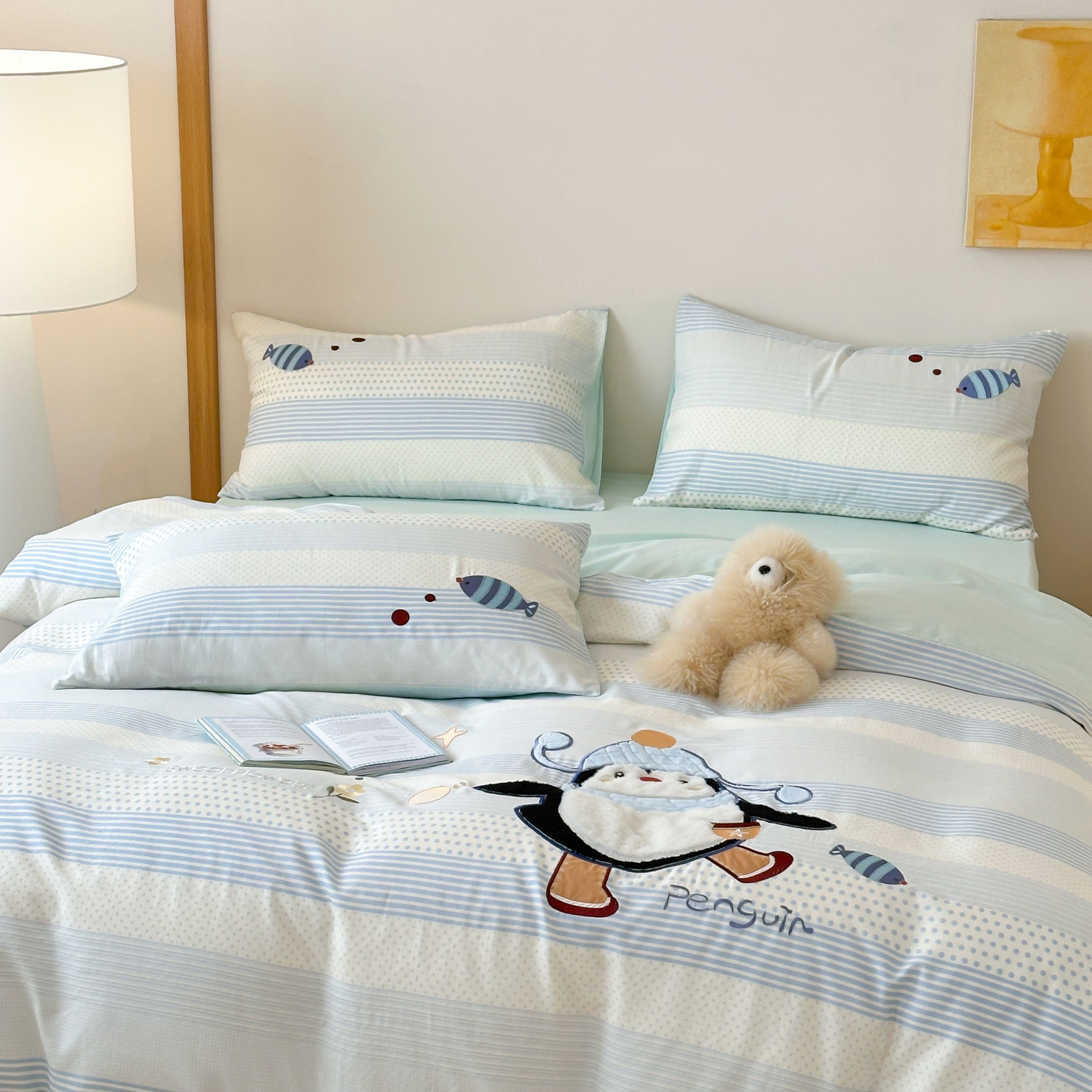 商品名称:紫桐 Lila lndus 2025新款双层纱贴布绣四件套 小企鹅