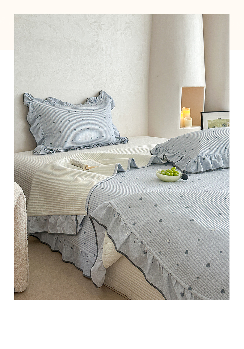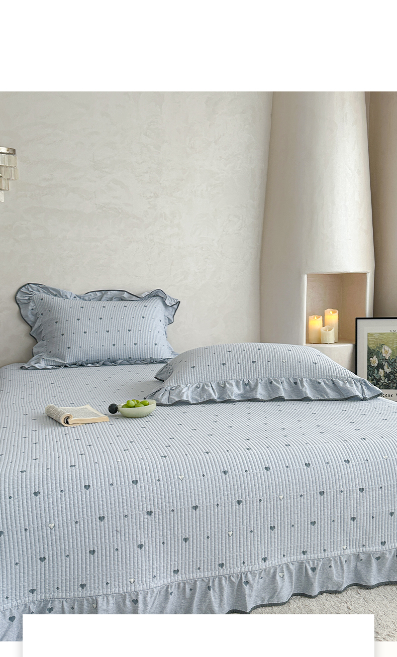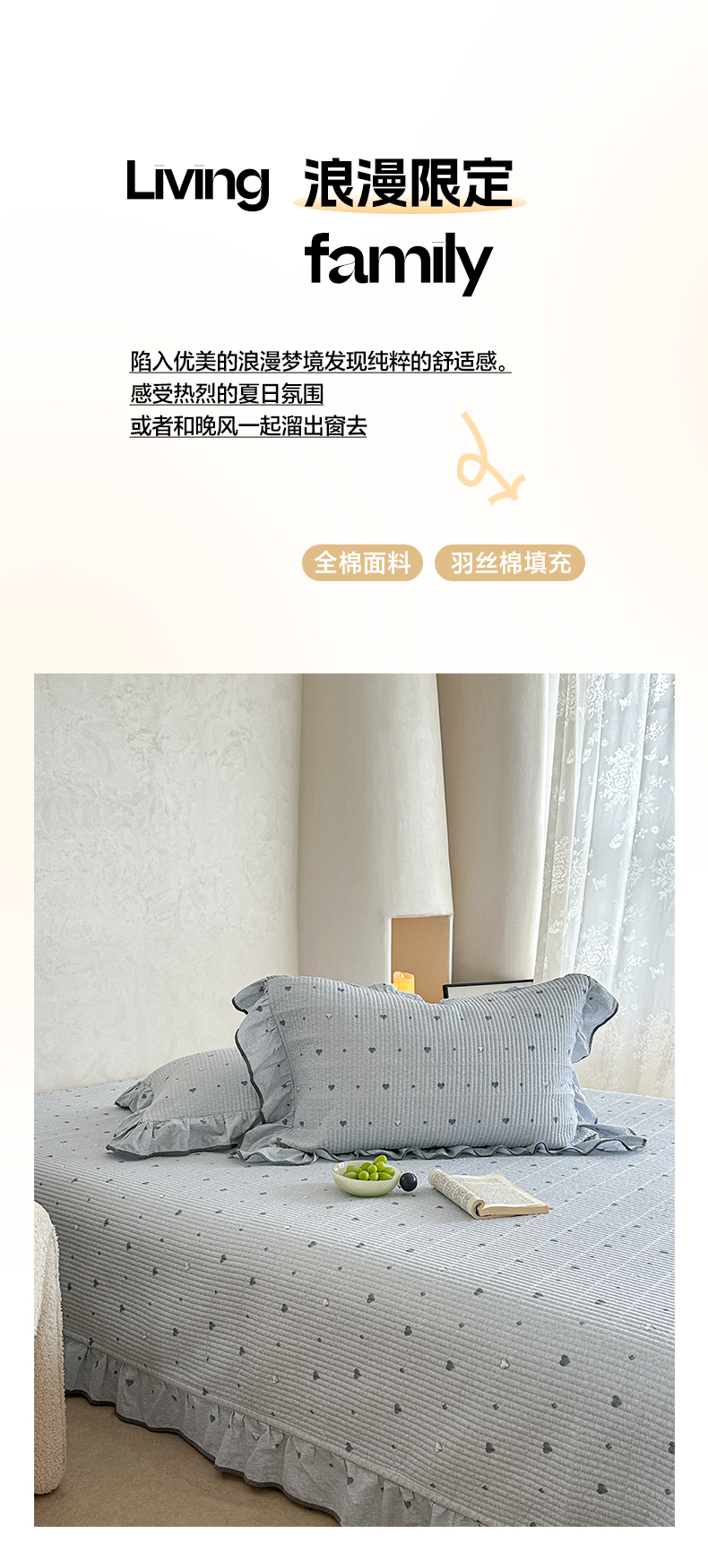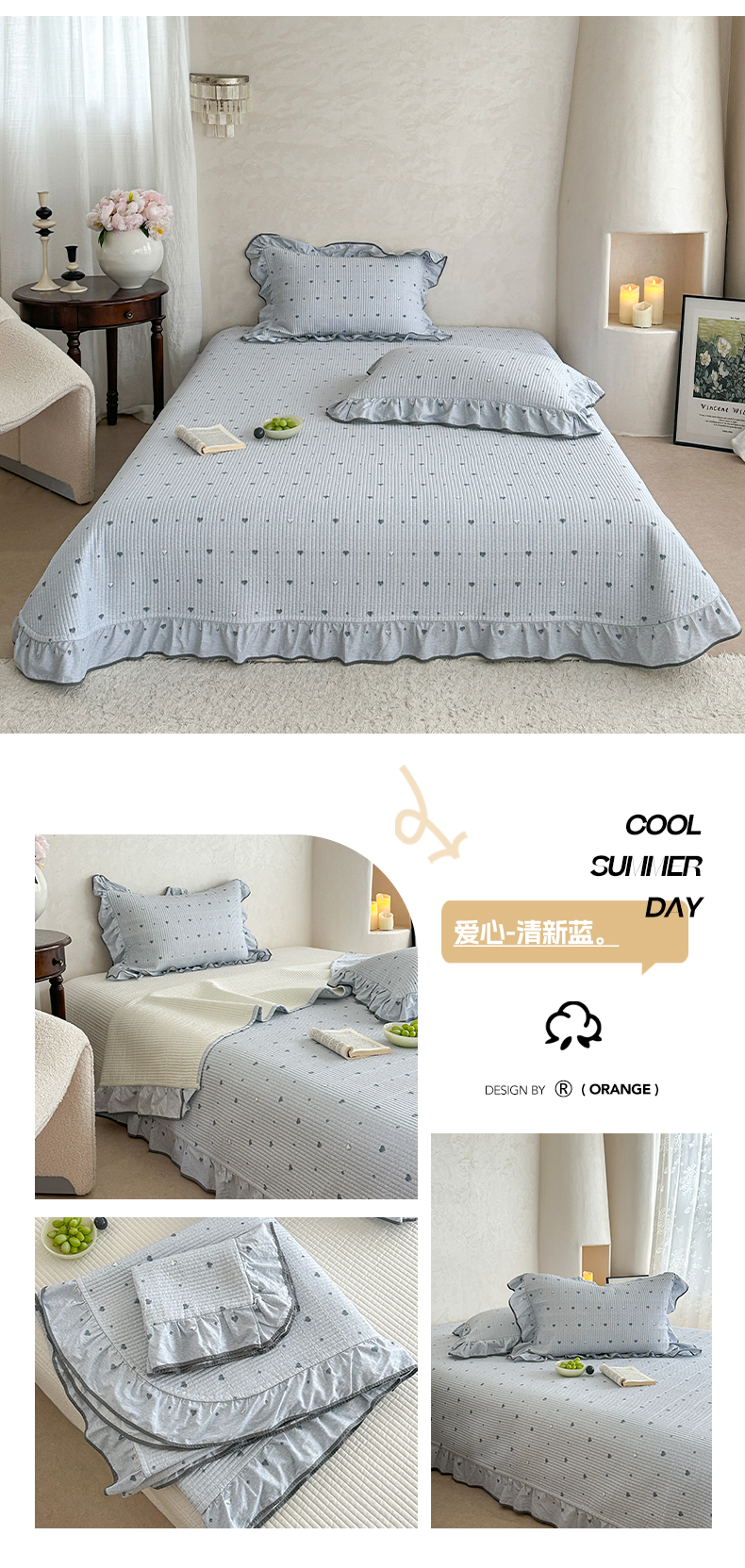 商品名称:琳可家居2025新款全棉印花花边床盖可搭配同款被套 爱心-清新蓝