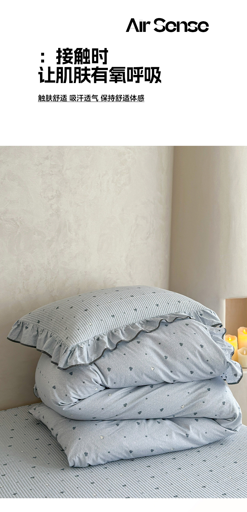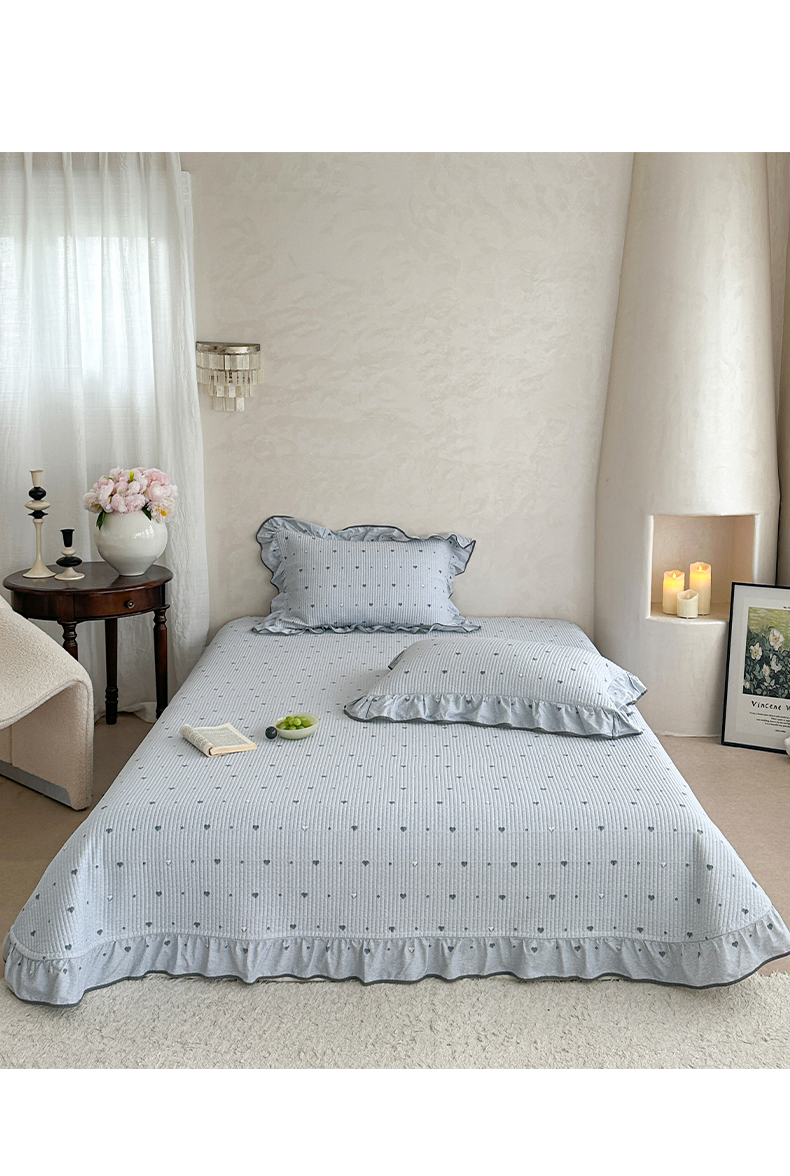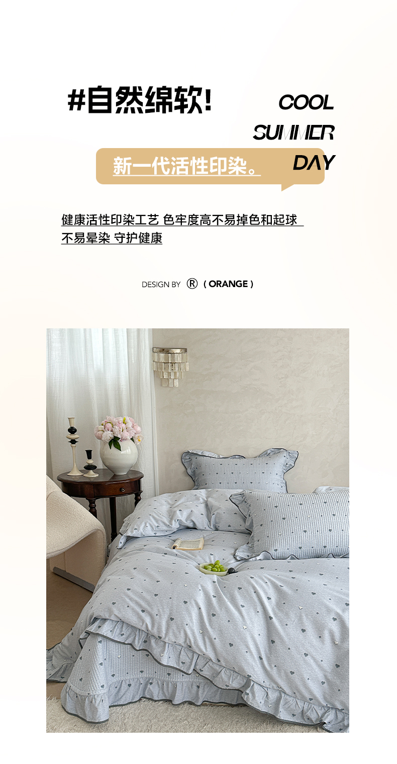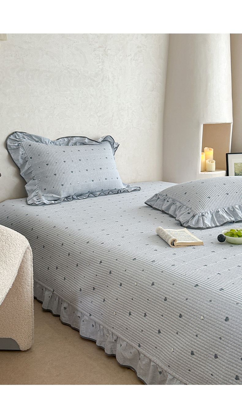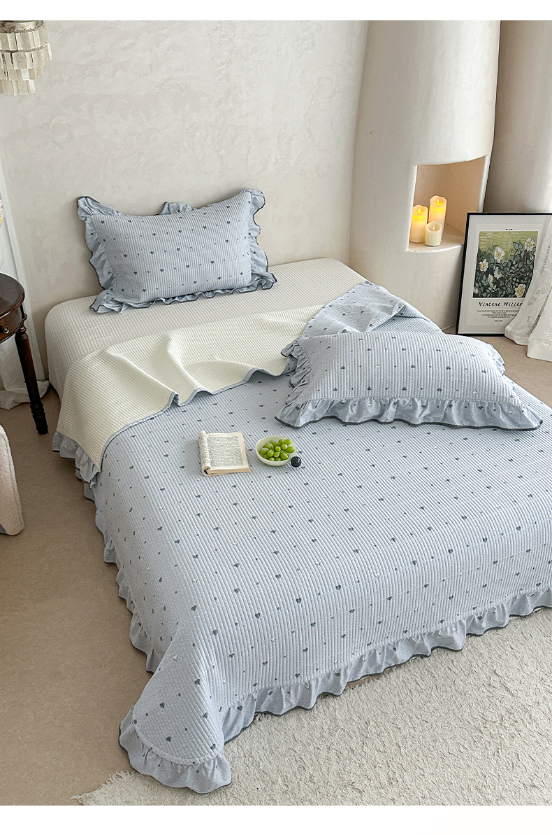 商品名称:琳可家居2025新款全棉印花花边床盖可搭配同款被套 爱心-清新蓝