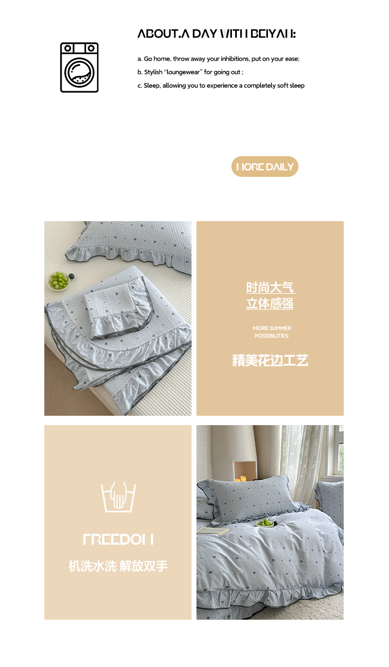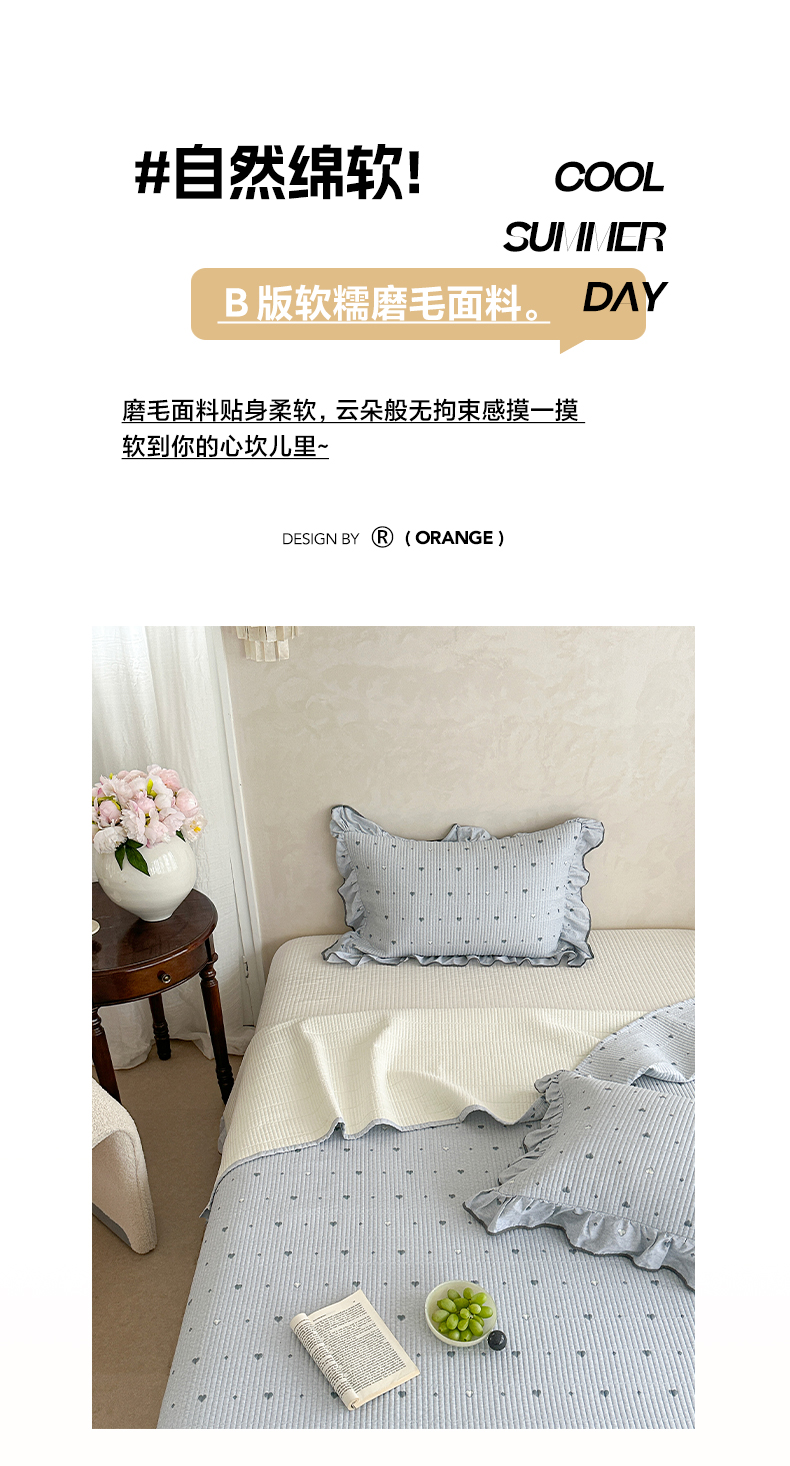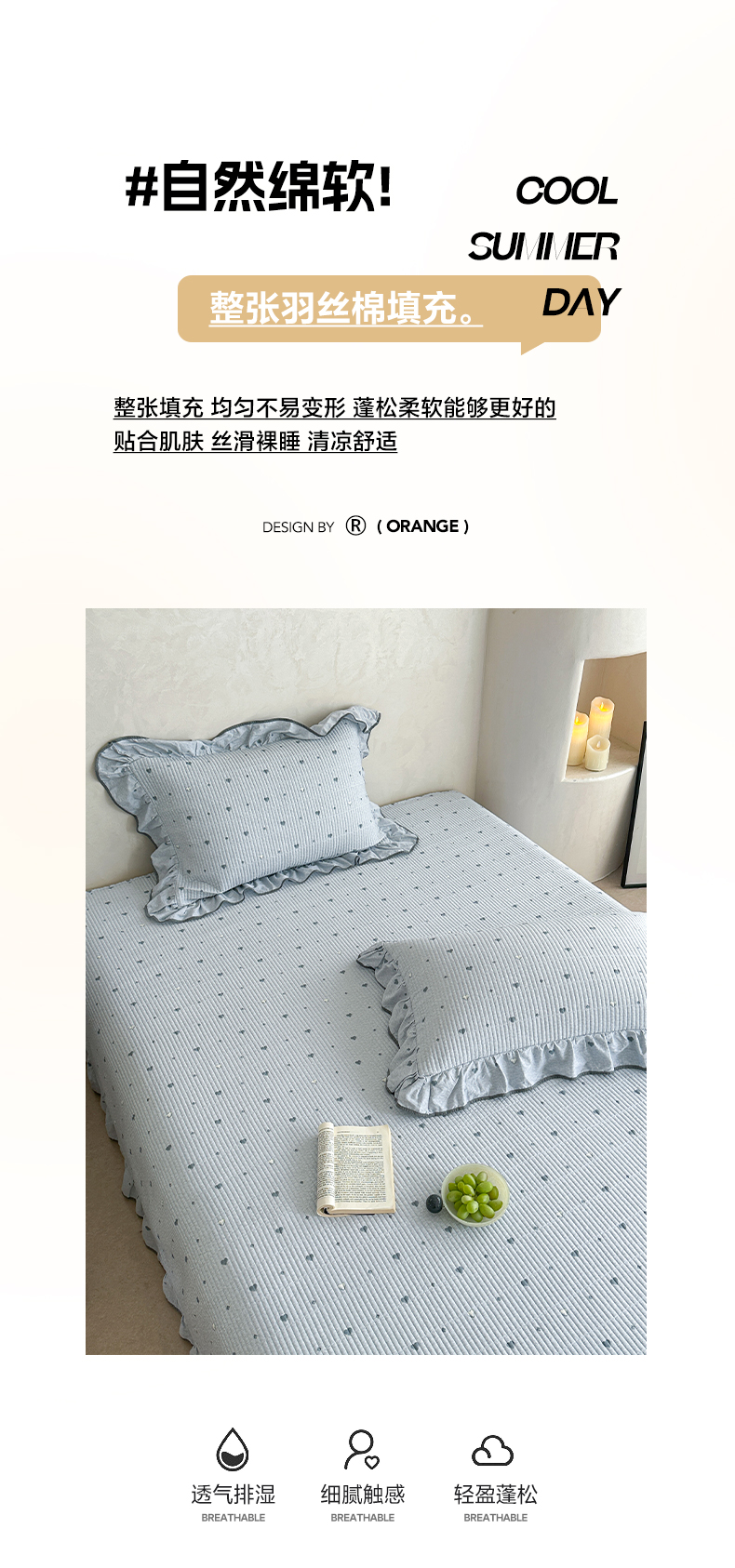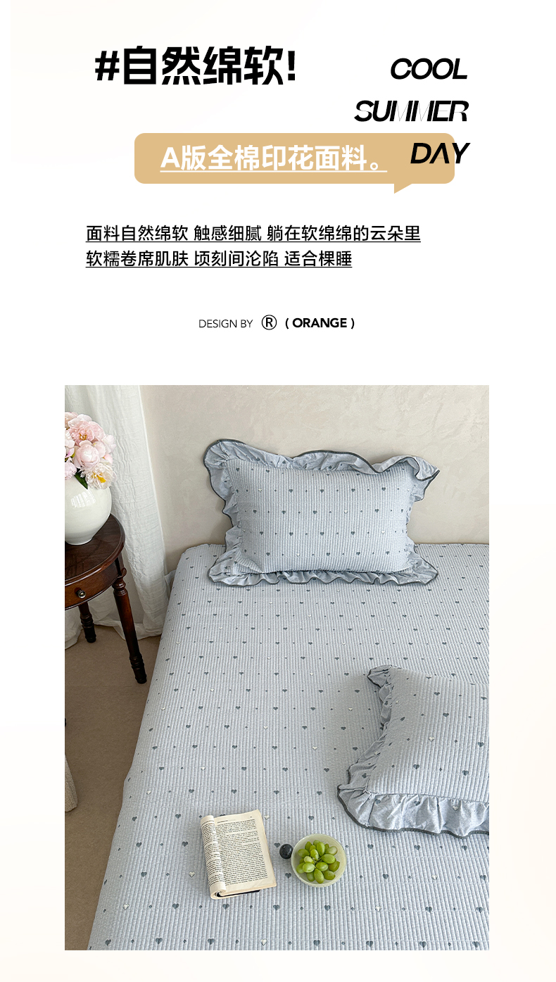 商品名称:琳可家居2025新款全棉印花花边床盖可搭配同款被套 爱心-清新蓝