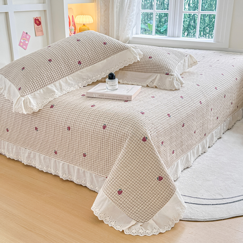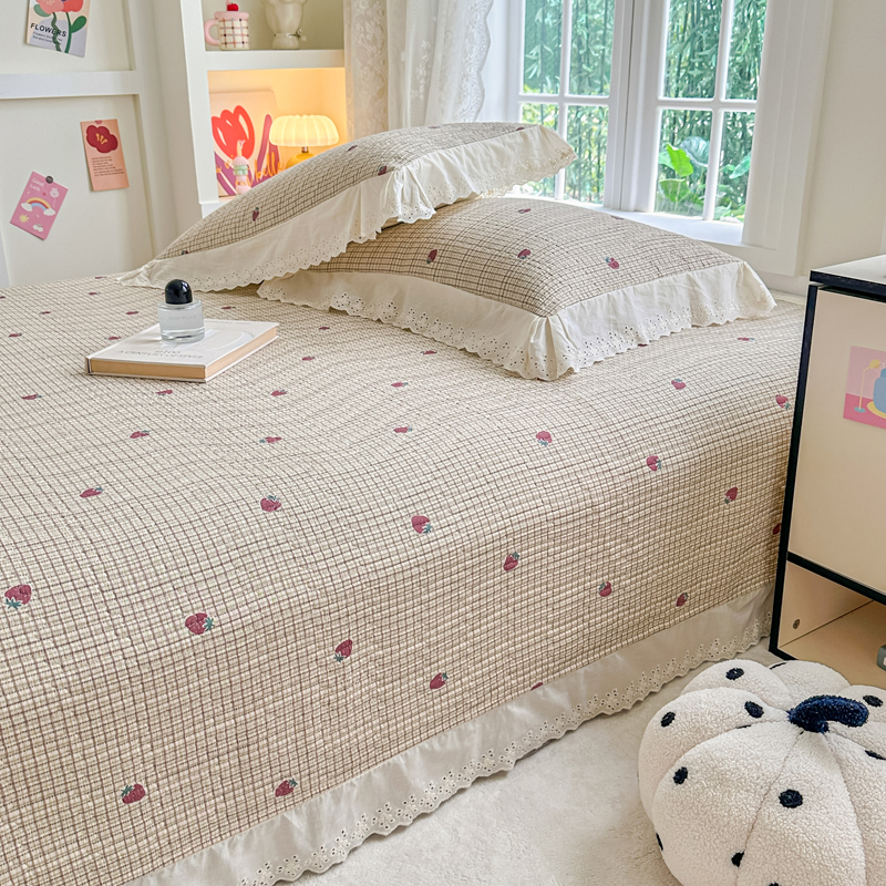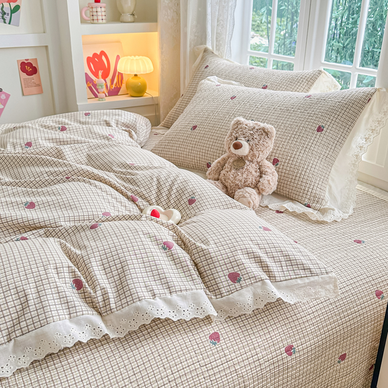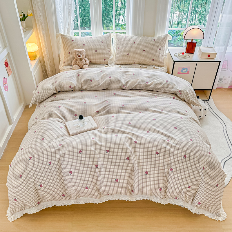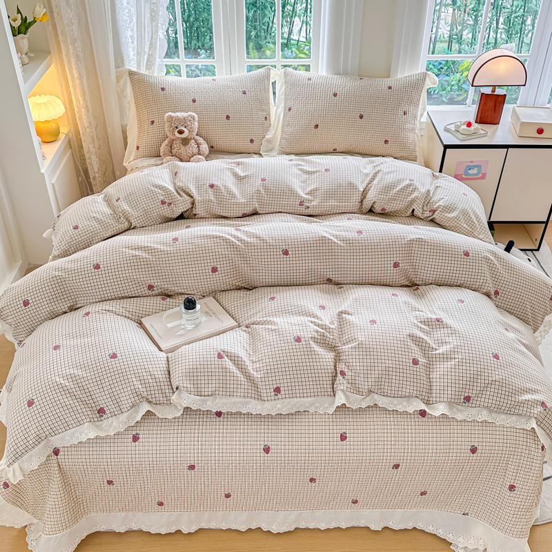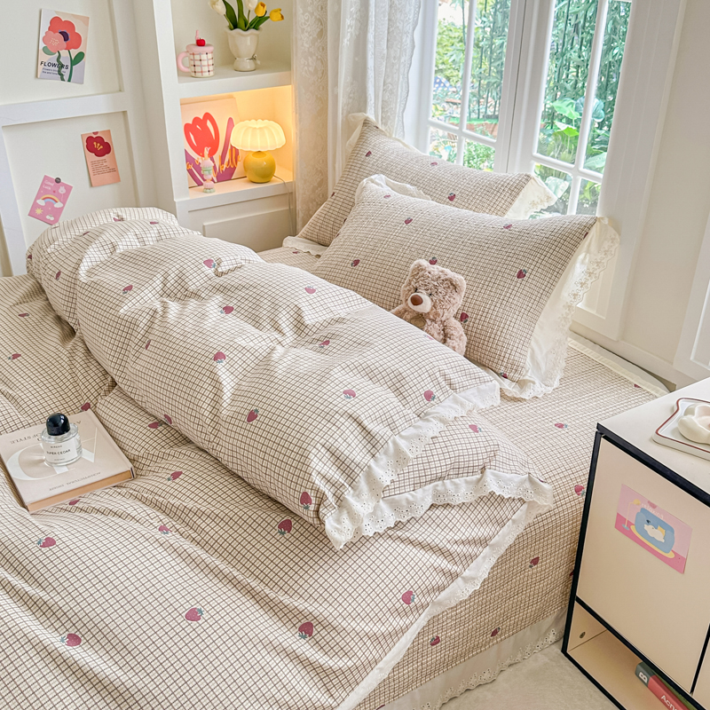 当前位置: 91家纺网 > 商品网购 > 床品套件 > 四件套 > 全棉普通四件套 > 岚吉家纺 2025新款全棉棉花床盖四件套 草莓格子