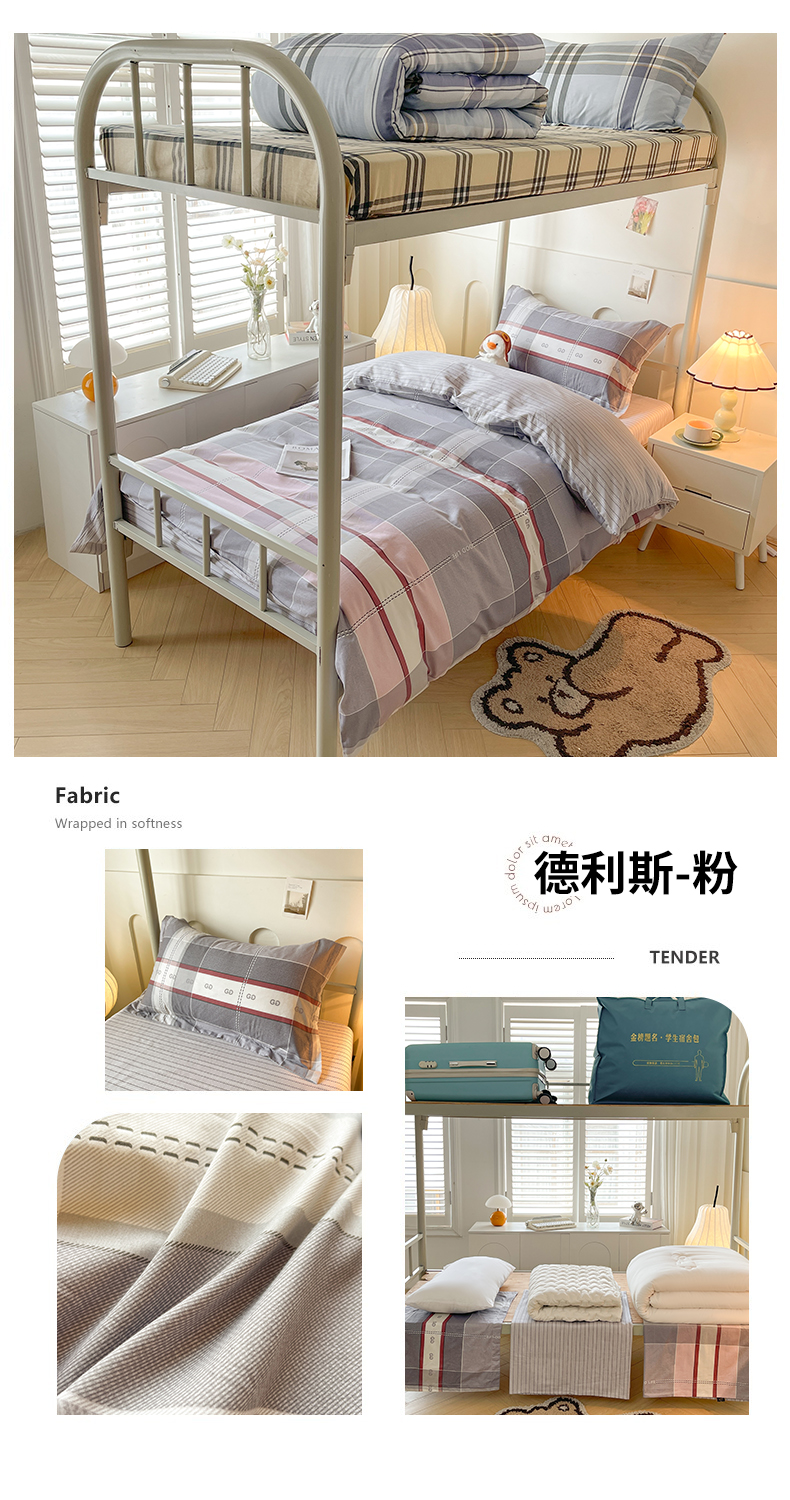 当前位置: 91家纺网 > 商品网购 > 床品套件 > 三件套 > 慕木家纺 2025新款12868全棉印花学生上下铺三件套大礼包系列 德利斯-粉