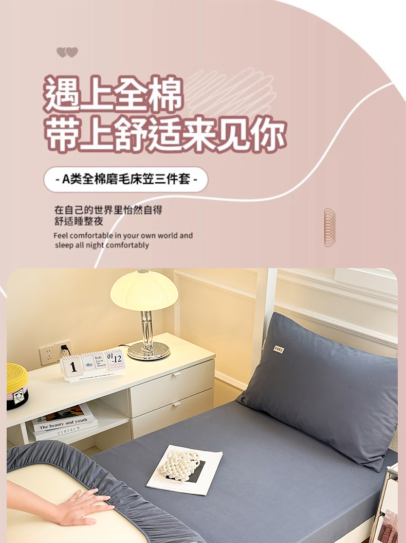 商品名称:(总)眠博士 2025新款纯色全棉纯棉磨毛学生床床笠单品床笠床笠单件