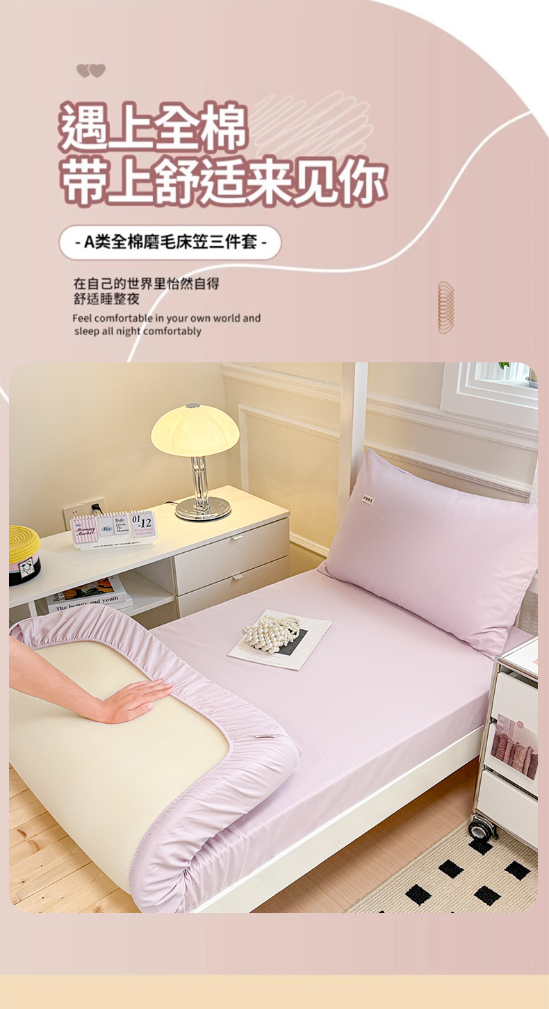 • 91家纺网 家纺一手货源 找家纺 眠博士 2025新款纯色全棉纯棉磨毛学生床床笠单品床笠床笠单件 磨毛床笠-陶瓷紫